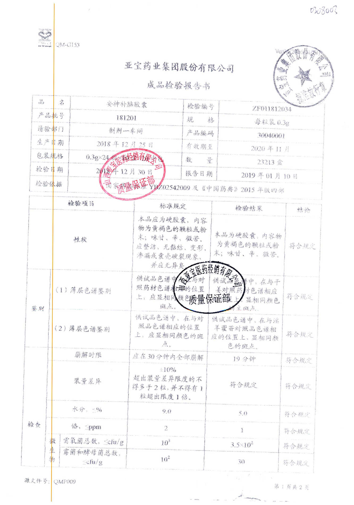 安神補腦膠囊 | 0.3g*24s | 181201(2/2) | 查看詳情 |