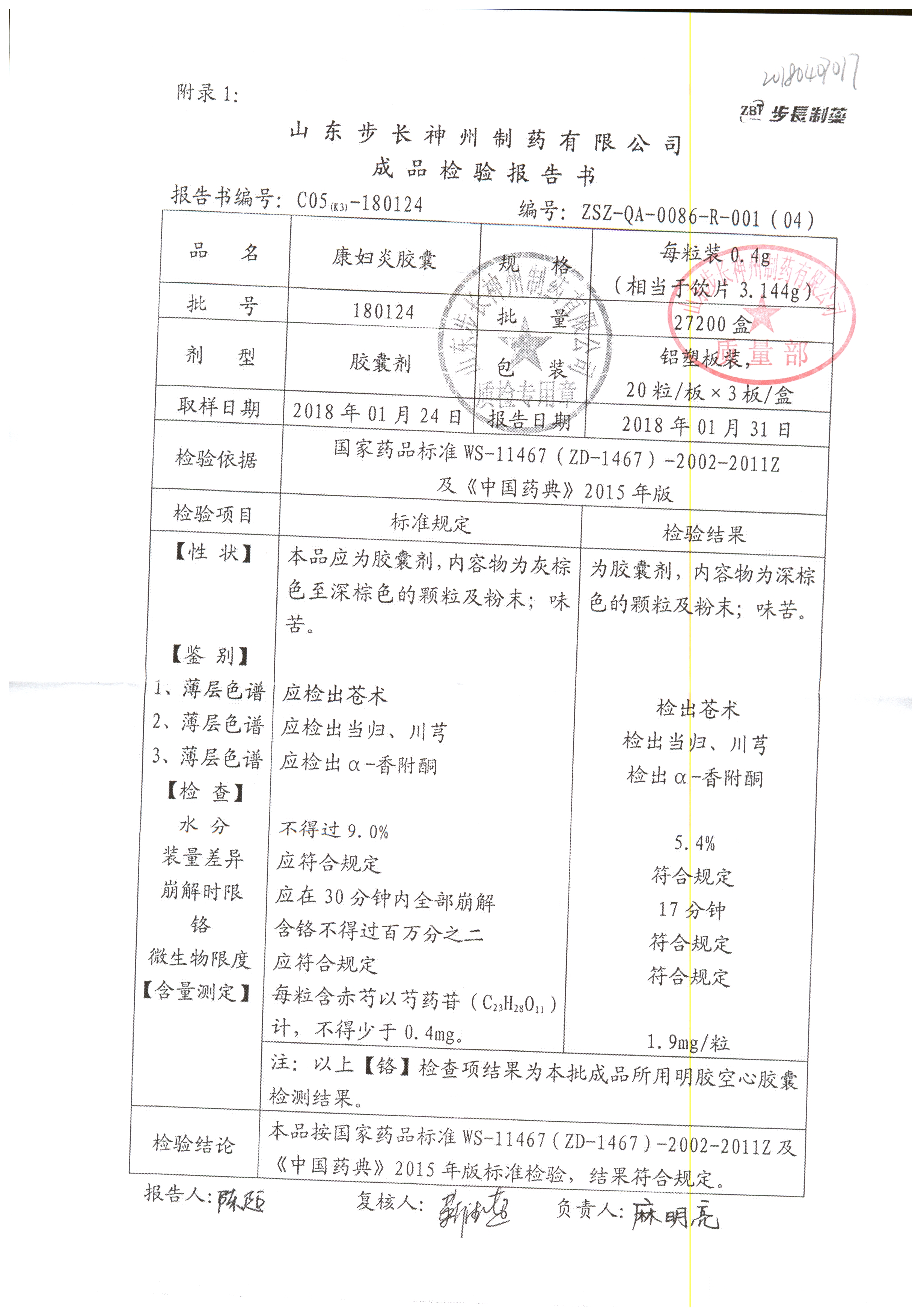 名稱 | 規(guī)格 | 批號 | 藥檢報告 |