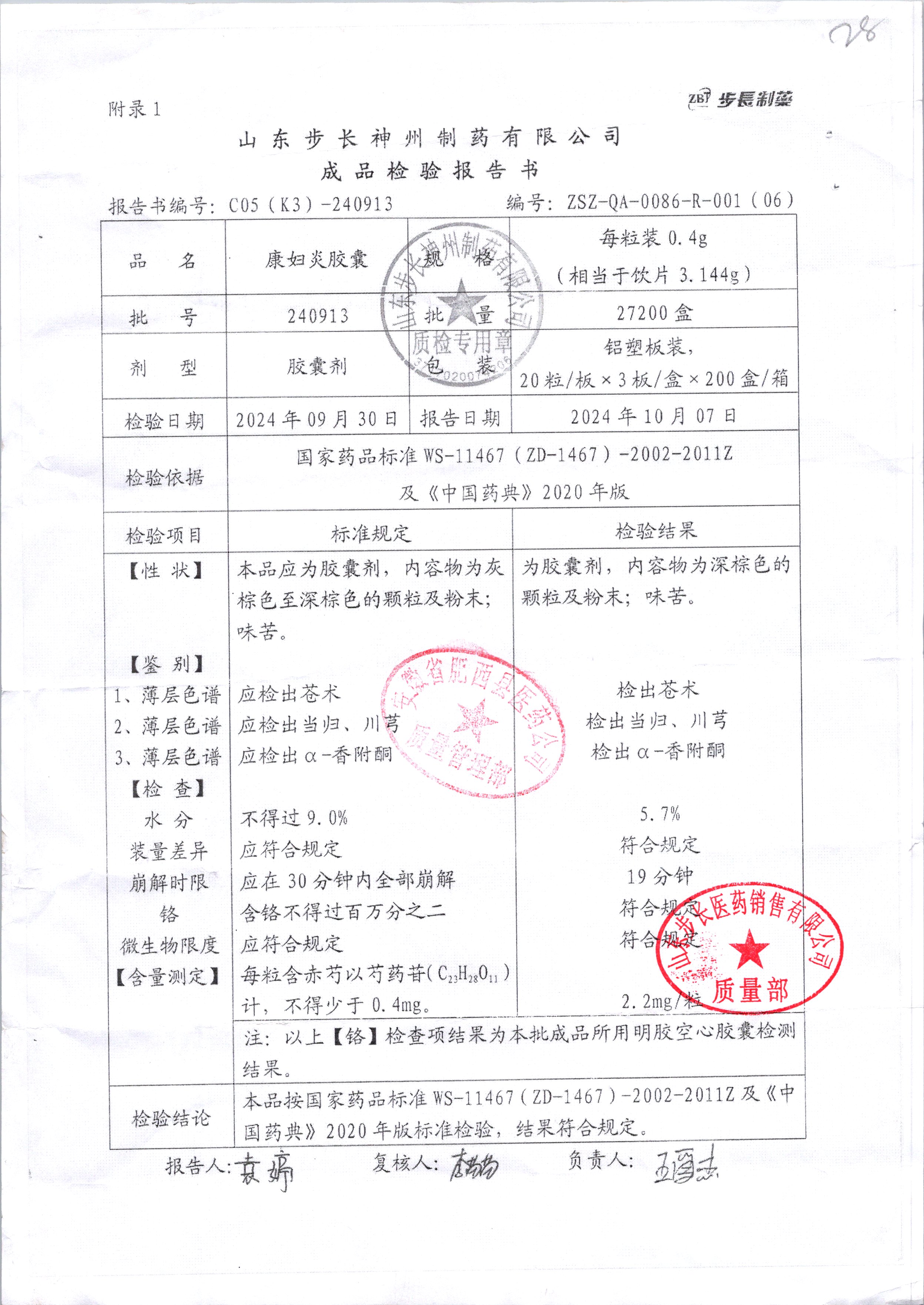 康婦炎膠囊 | 0.4g*60粒 | 240913 | 查看詳情 |