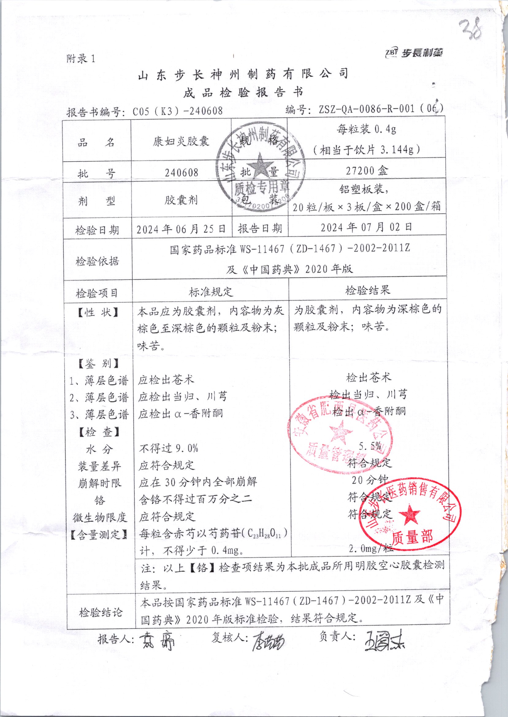 康婦炎膠囊 | 0.4g*60粒 | 240209 | 查看詳情 |