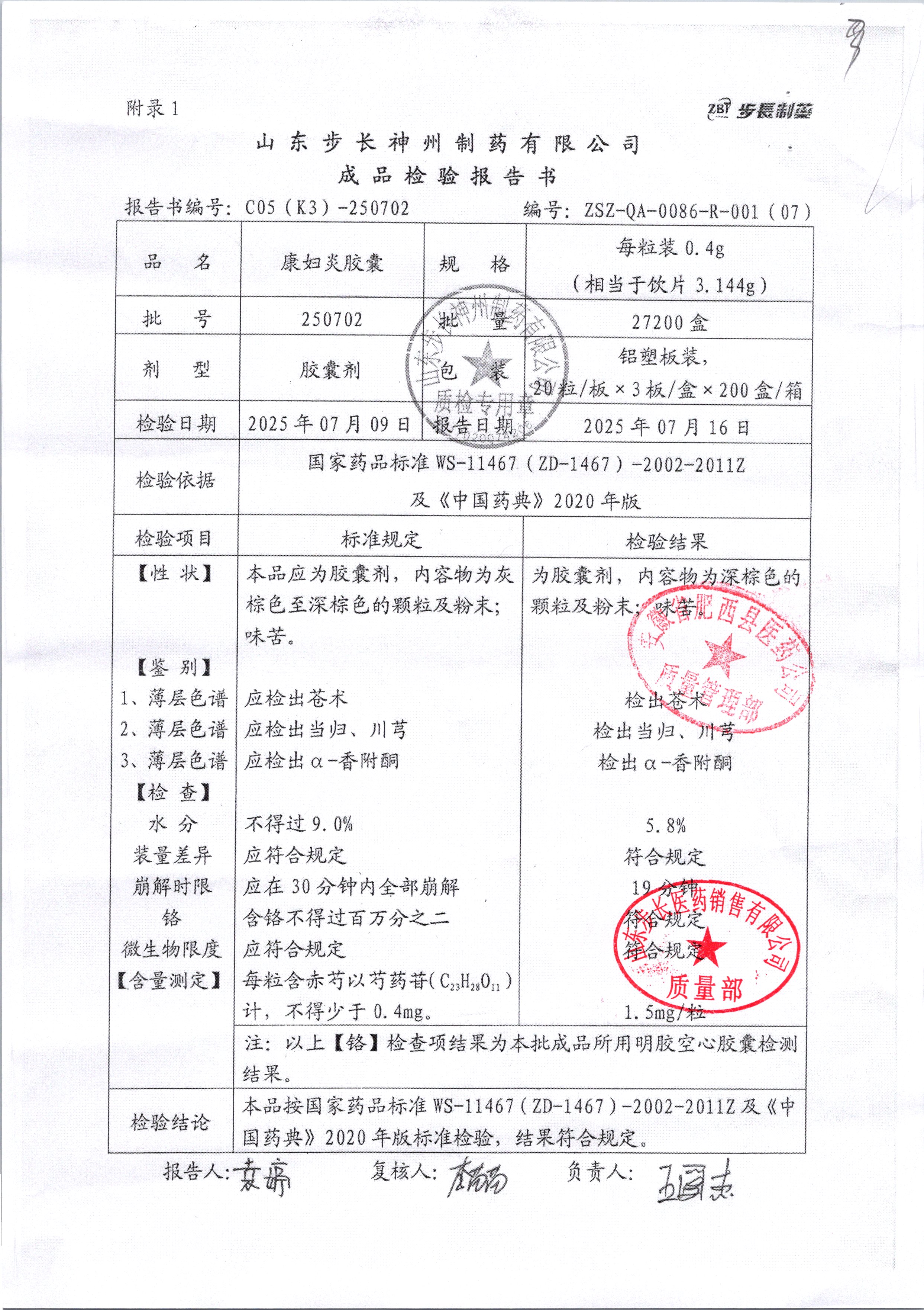 康婦炎膠囊 | 0.4g*60粒 | 250702 | 查看詳情 |