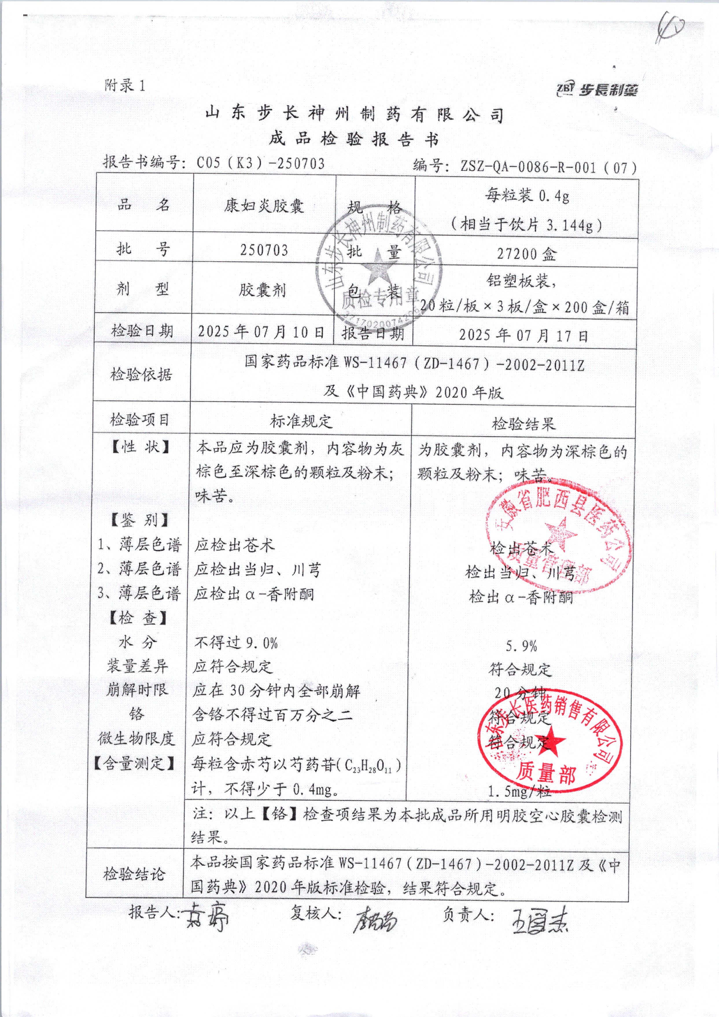 康婦炎膠囊 | 0.4g*60粒 | 250703 | 查看詳情 |