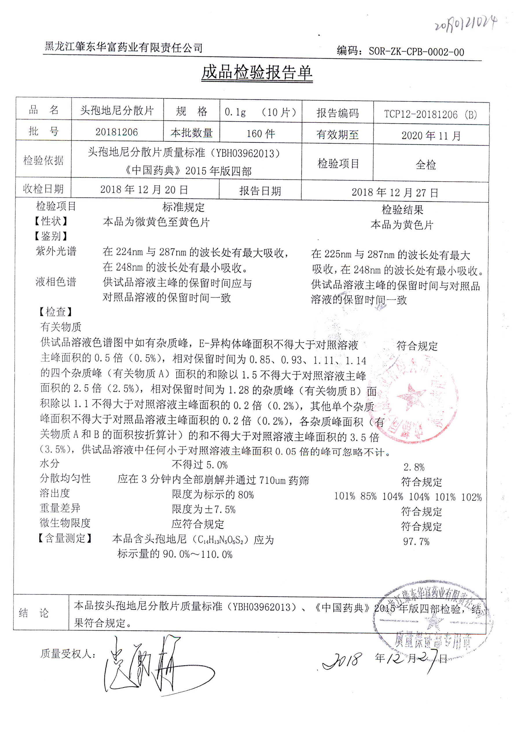 頭孢地尼分散片 | 0.1g*10s | 20181211 | 查看詳情 |