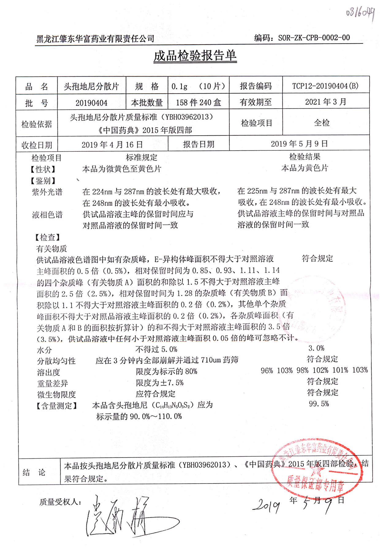 頭孢地尼分散片 | 0.1g*10s | 20190404 | 查看詳情 |