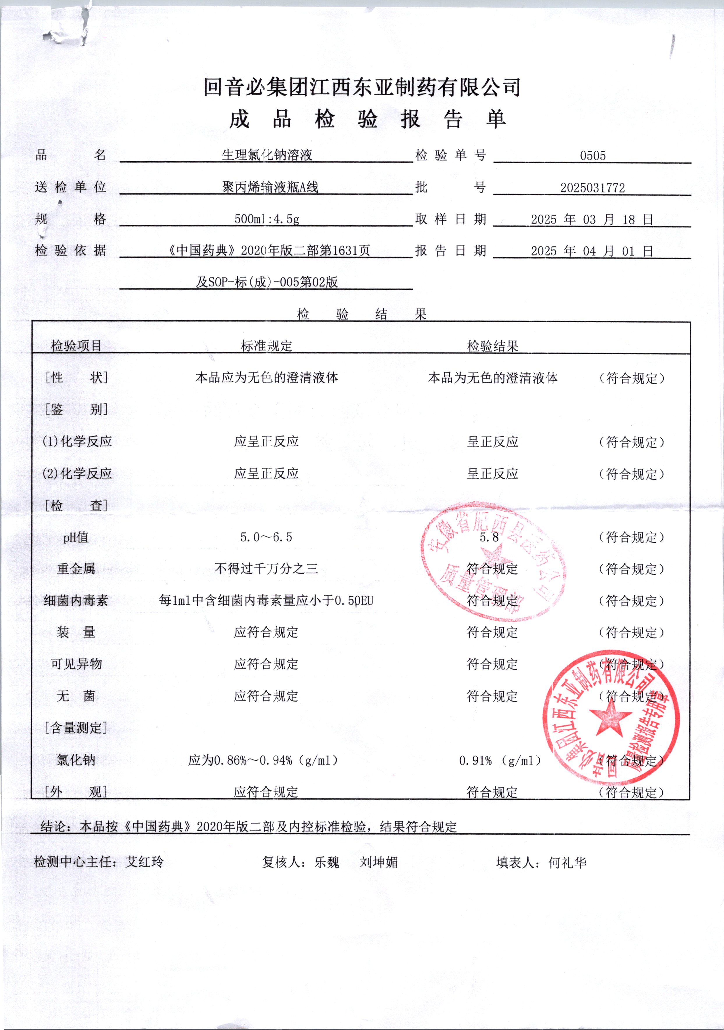 生理氯化鈉溶液 | 500ml:4.5g | 2025031773 | 查看詳情 |