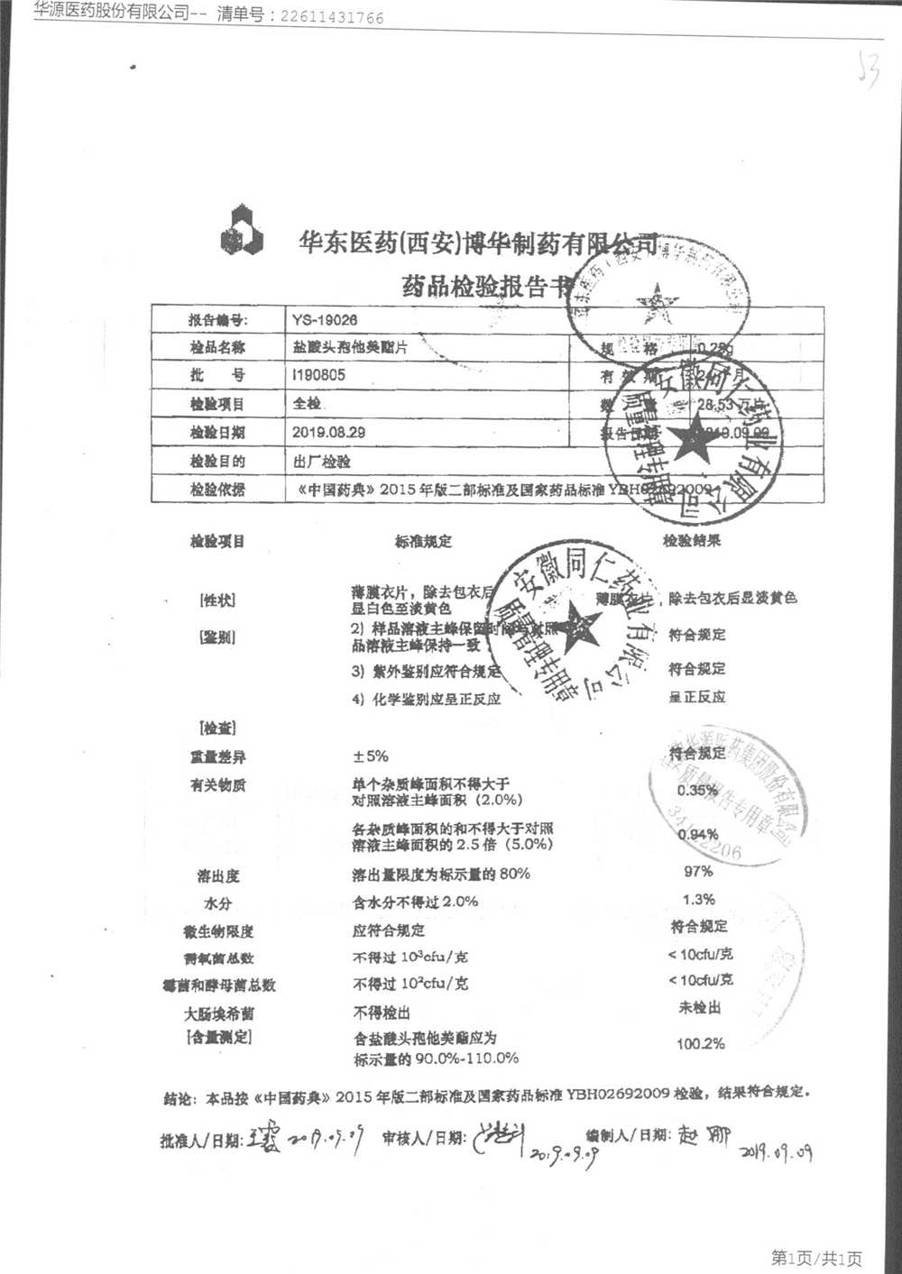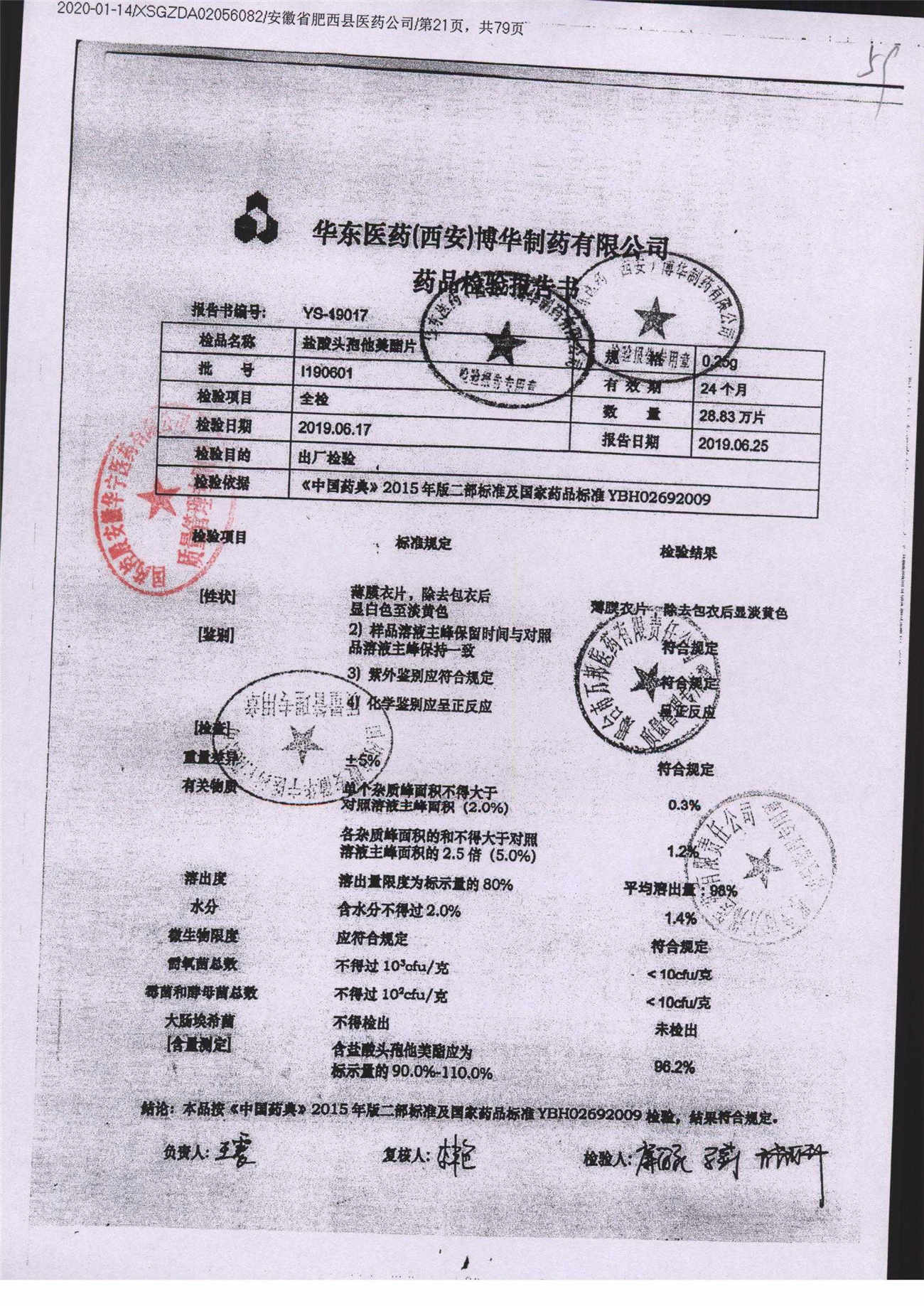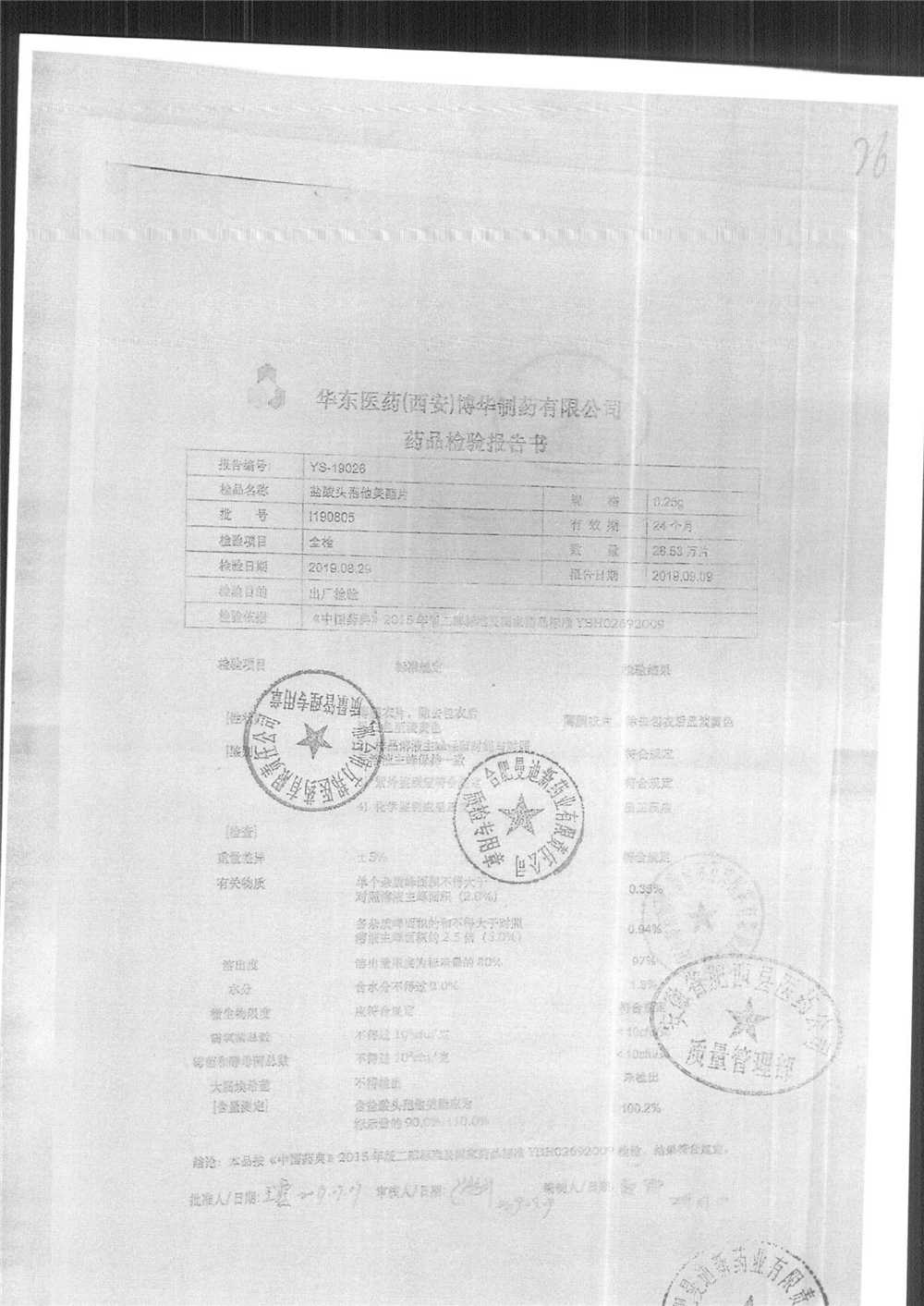 鹽酸頭孢他美酯片 | 0.25g | l190304 | 查看詳情 |