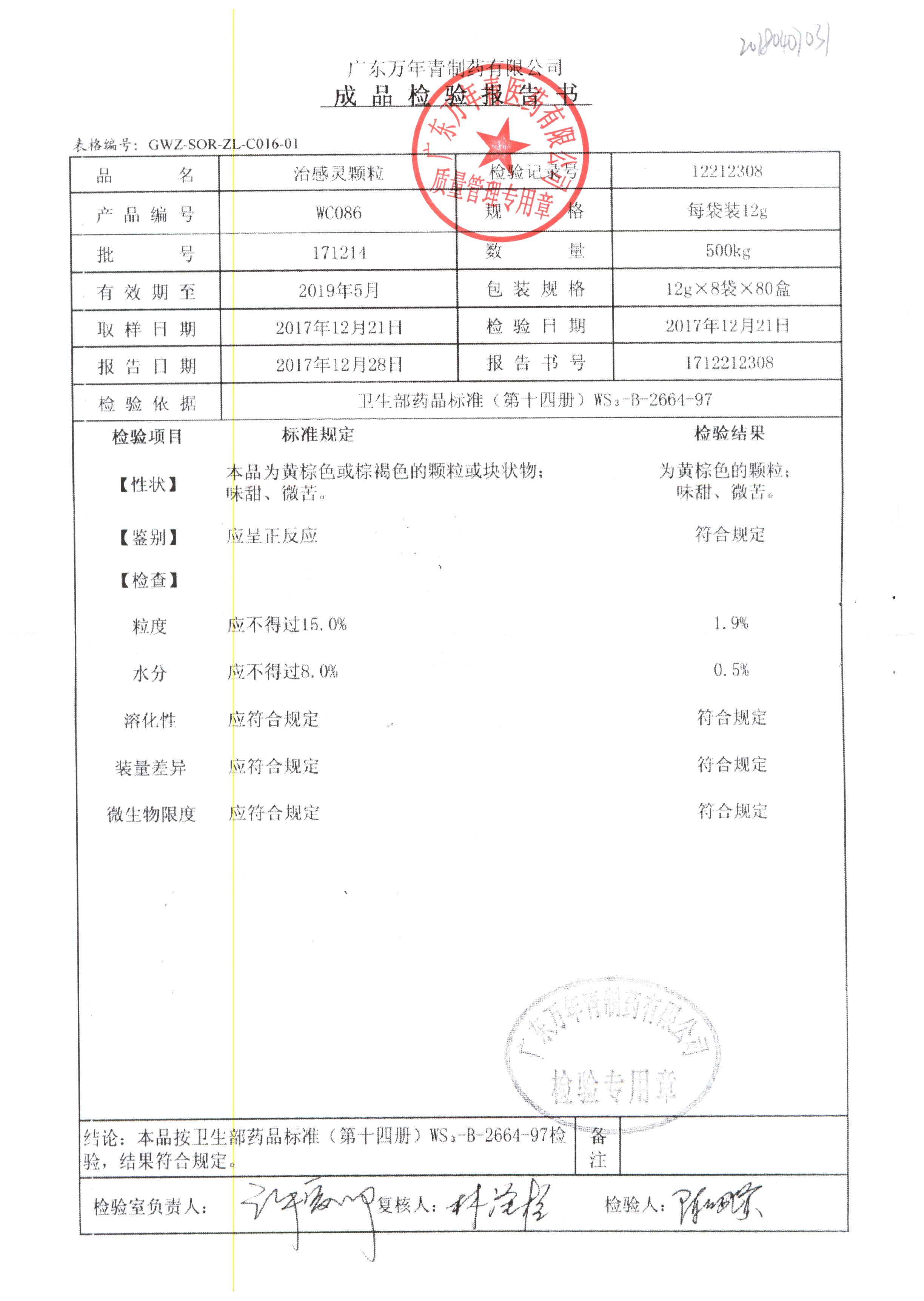名稱 規(guī)格 批號(hào) 藥檢報(bào)告