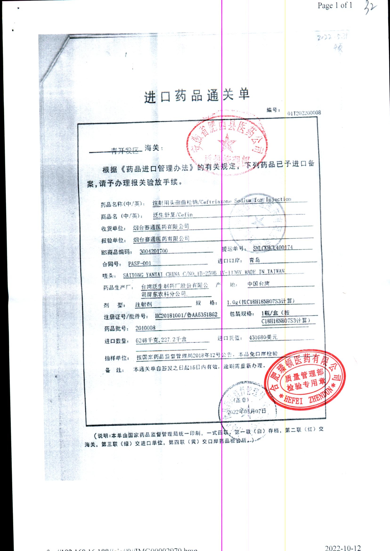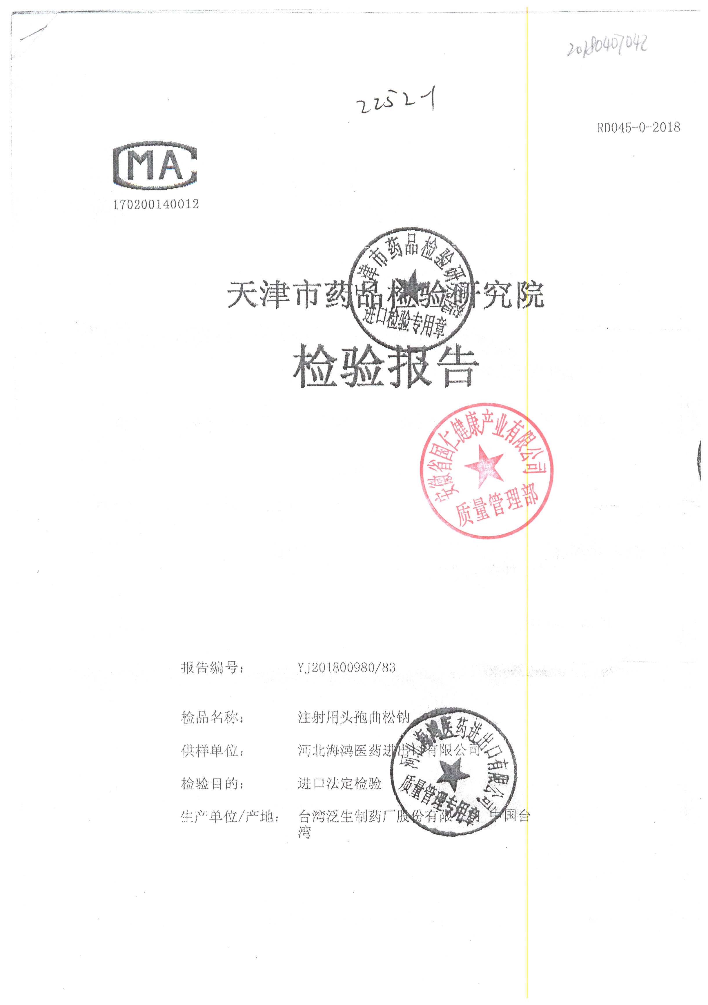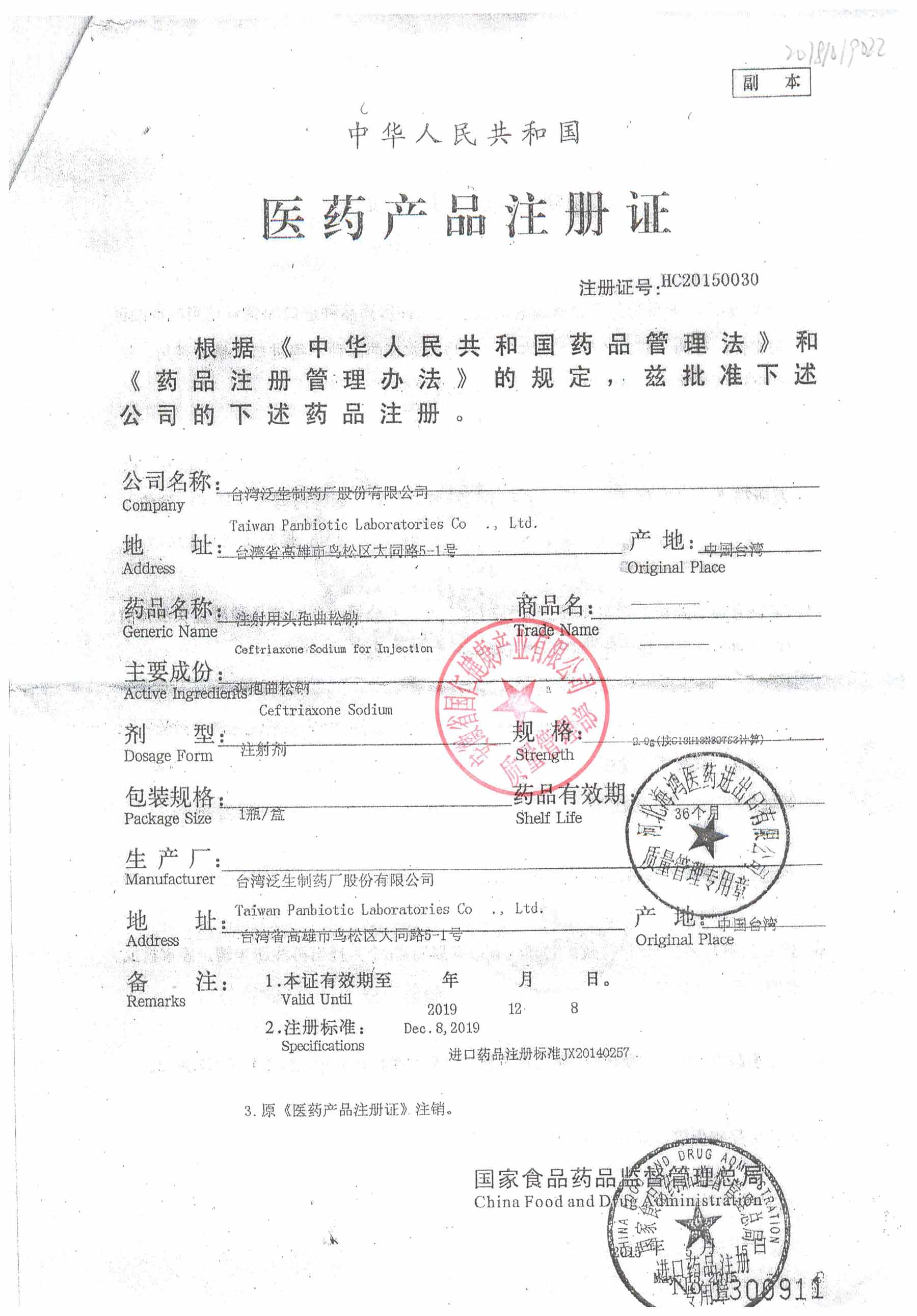 注射用頭孢曲松鈉 | 2.0g | 1903007(4/5) | 查看詳情 |