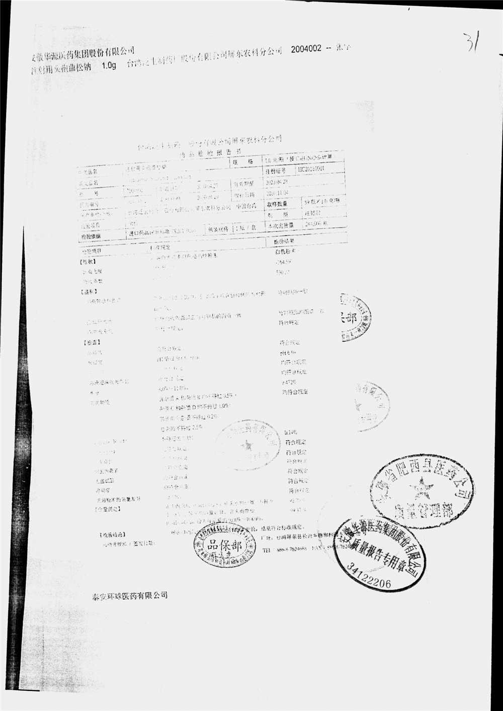 注射用頭孢曲松鈉 | 2.0g | 2004003(2/4) | 查看詳情 |