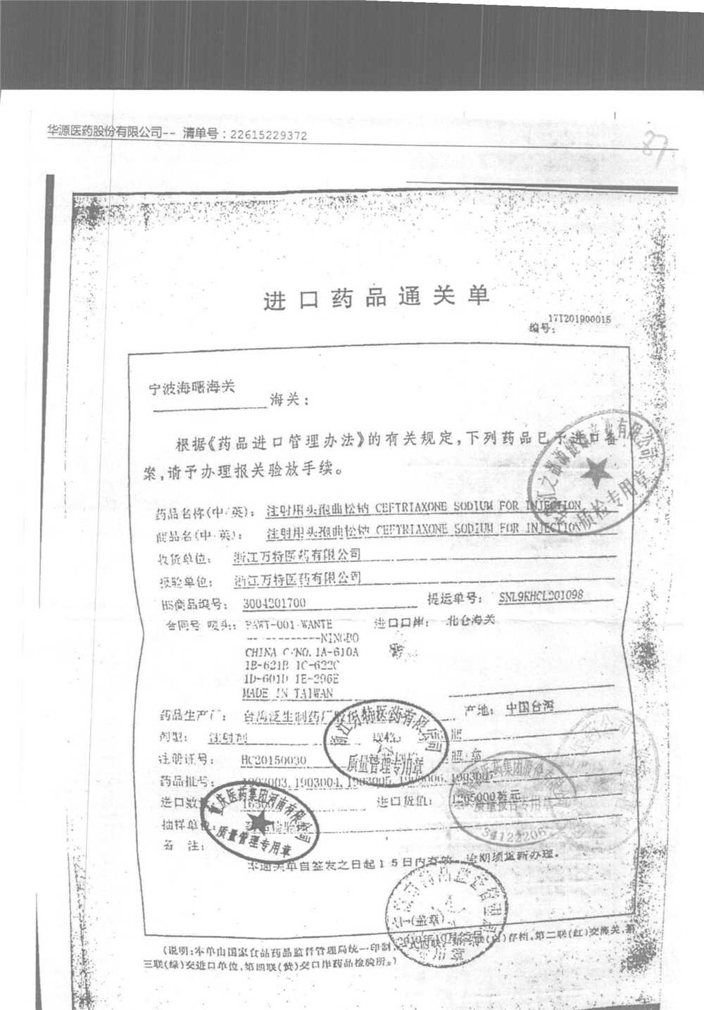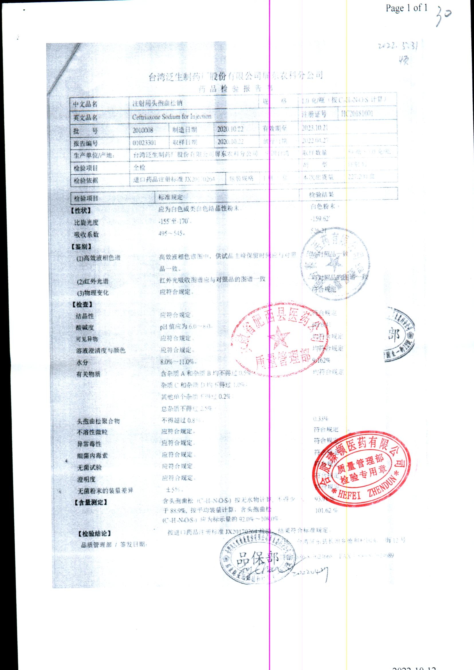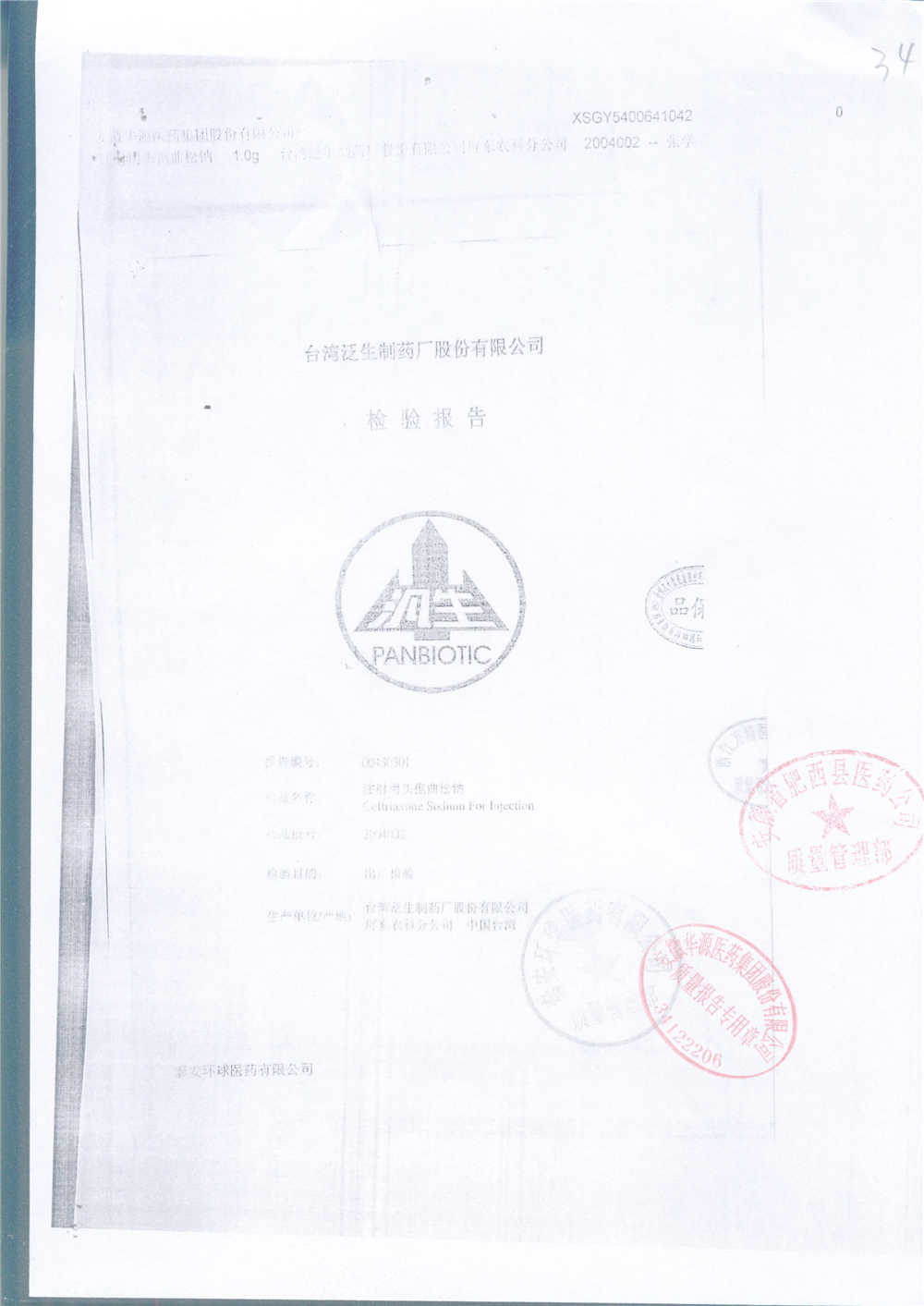 注射用頭孢曲松鈉 | 2.0g | 1712006(2/4) | 查看詳情 |