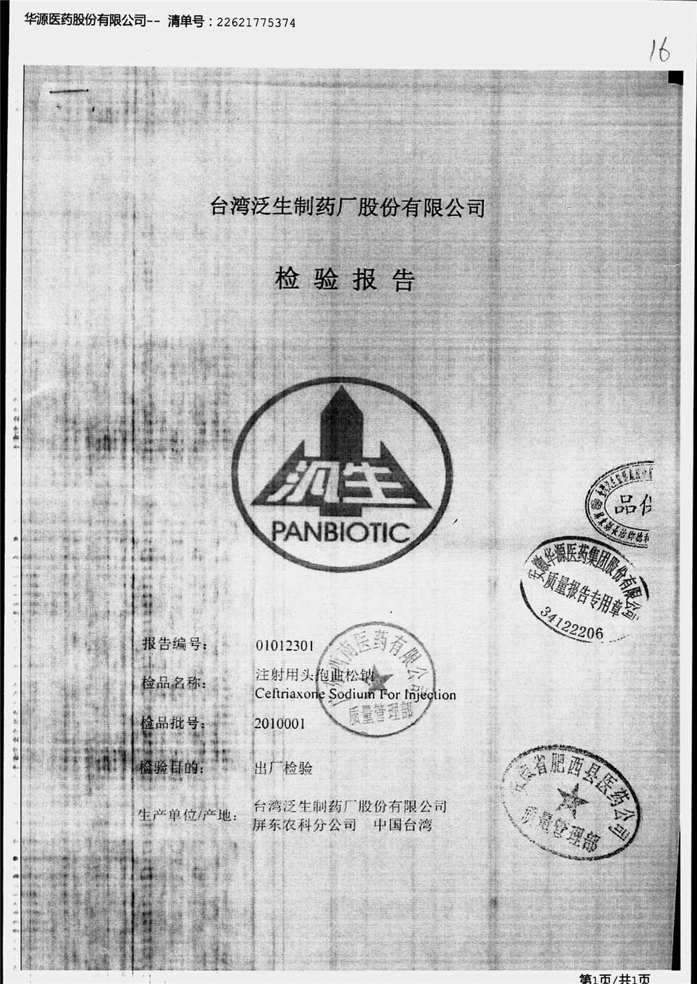注射用頭孢曲松鈉 | 2.0g | 1712006(3/4) | 查看詳情 |