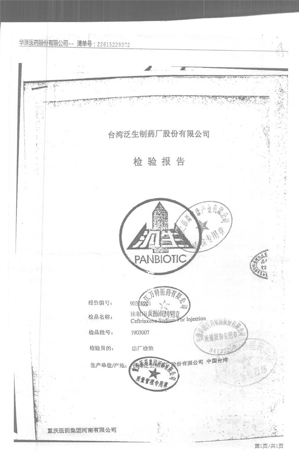 注射用頭孢曲松鈉 | 2.0g | 1903007(3/5) | 查看詳情 |