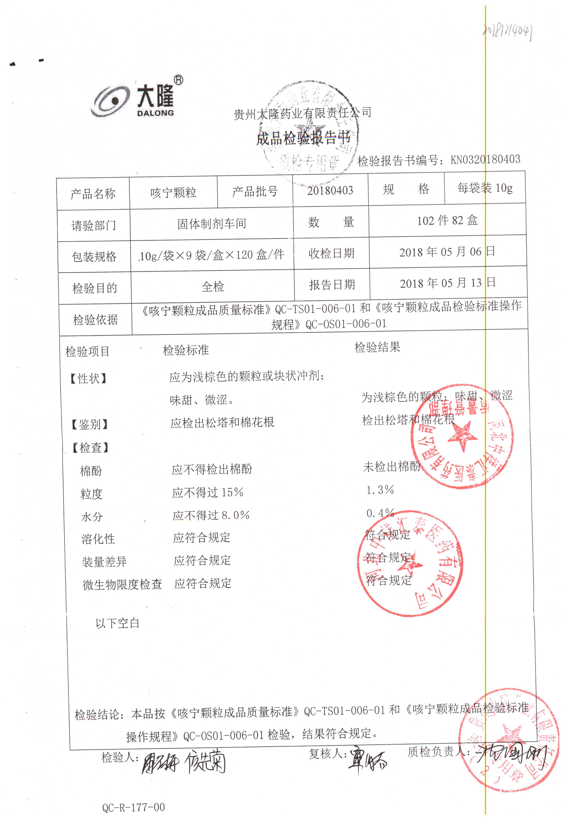 咳寧顆粒 | 10g*9袋 | 20180403 | 查看詳情 |