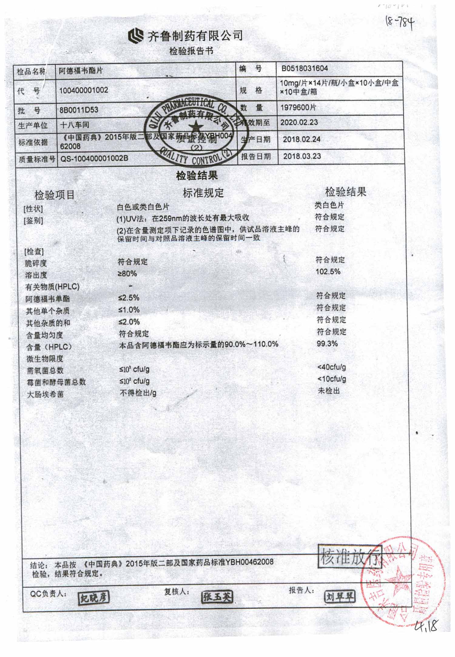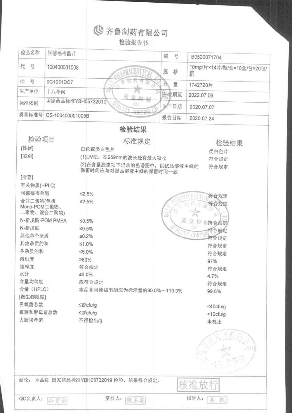 阿德福韋酯片 | 10mg*14s | 7M0141D53 | 查看詳情 |