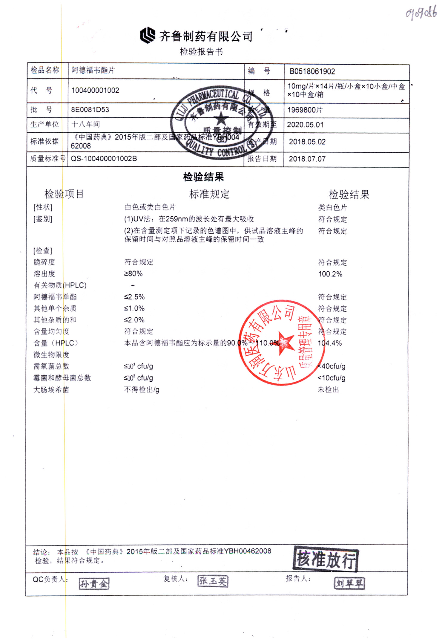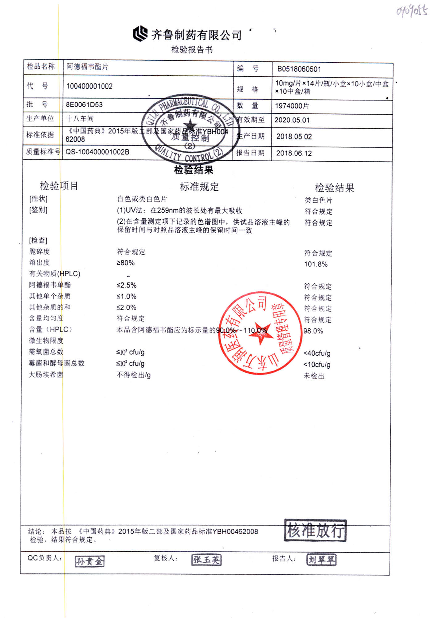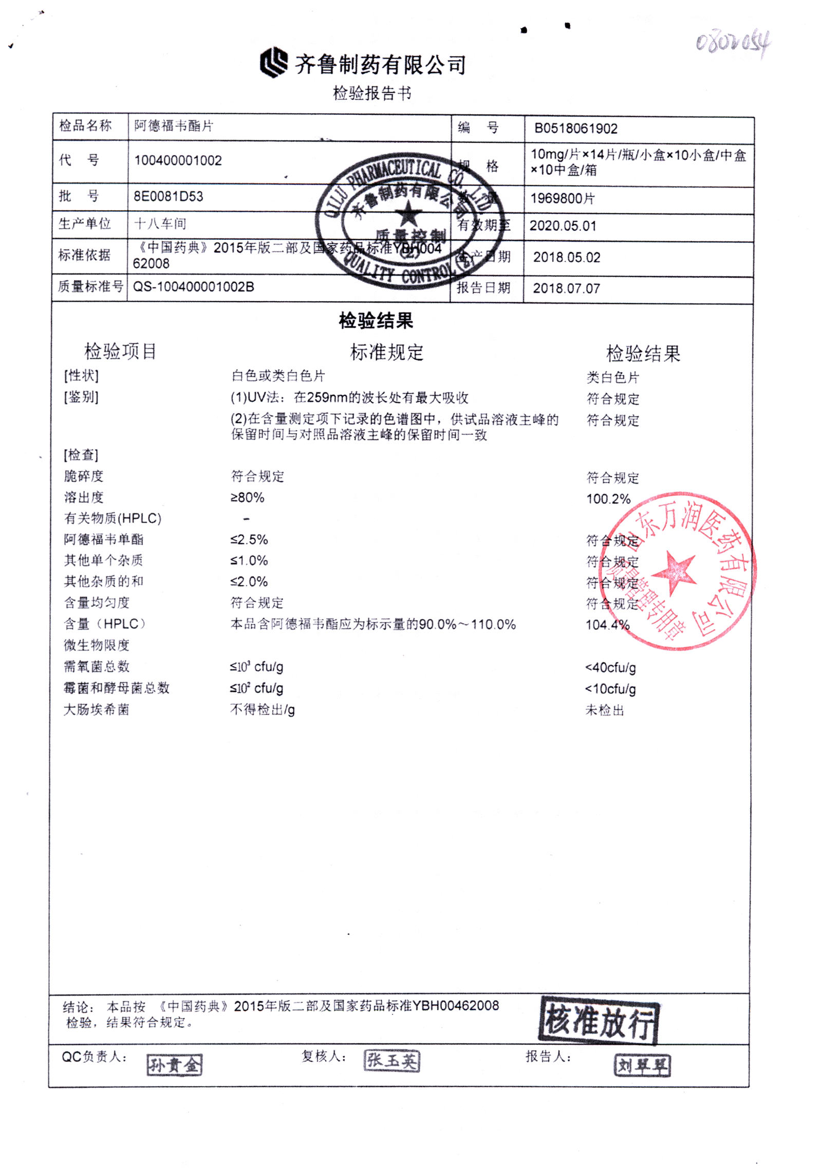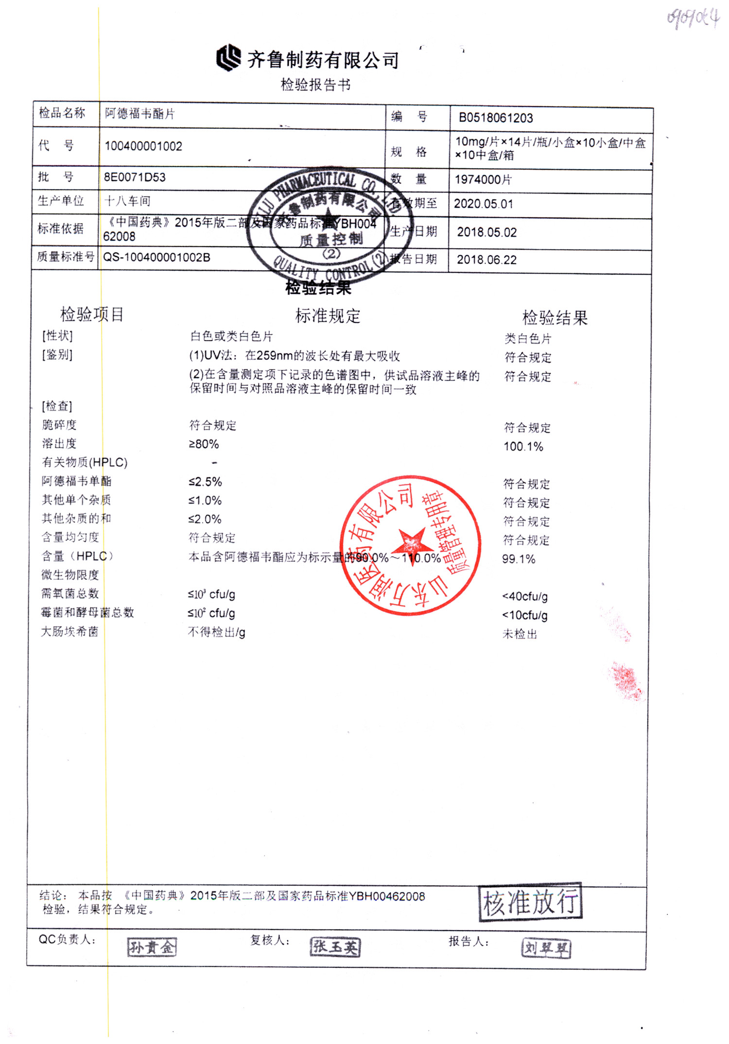名稱 | 規(guī)格 | 批號 | 藥檢報告 |