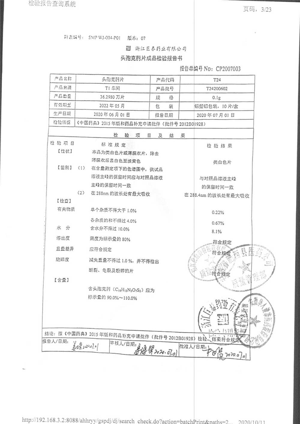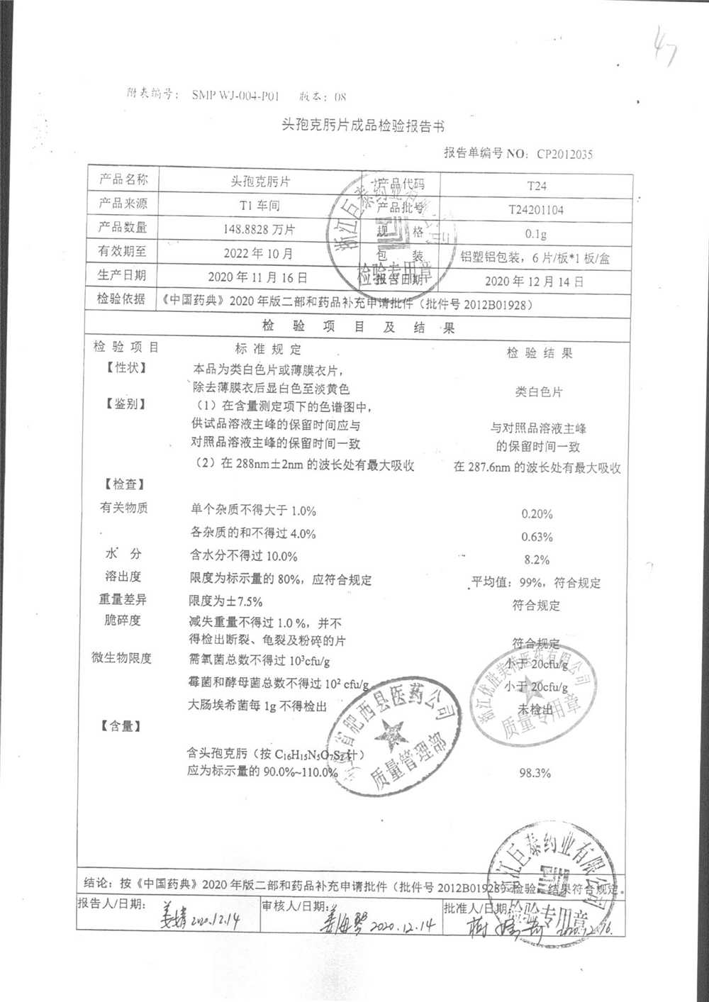 頭孢克肟片 | 0.1g*10s | T24191101 | 查看詳情 |