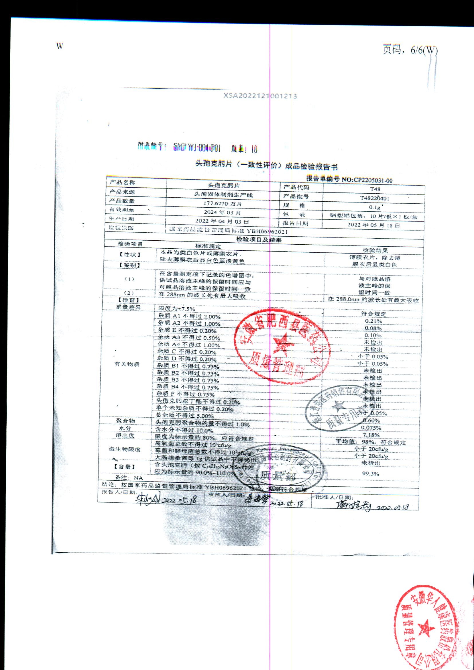 頭孢克肟片 | 0.1g*10s | T24201104 | 查看詳情 |