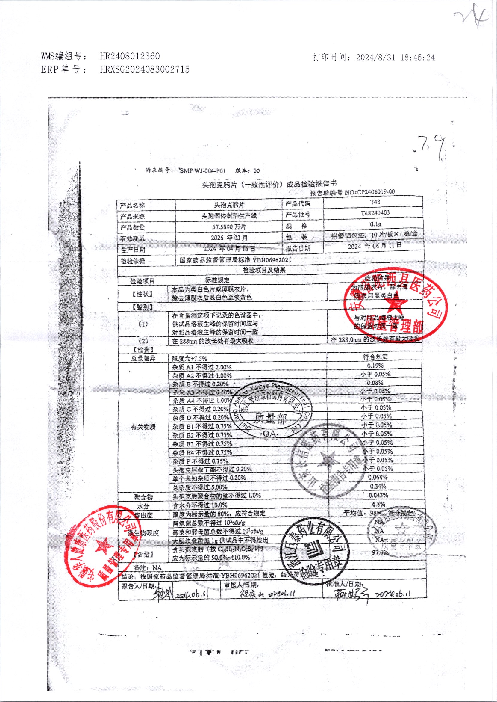 頭孢克肟片 | 0.1g*10s | T24200304 | 查看詳情 |