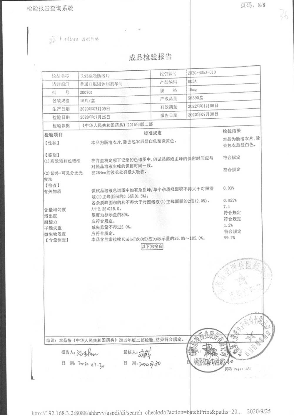 名稱(chēng) | 規(guī)格 | 批號(hào) | 藥檢報(bào)告 |