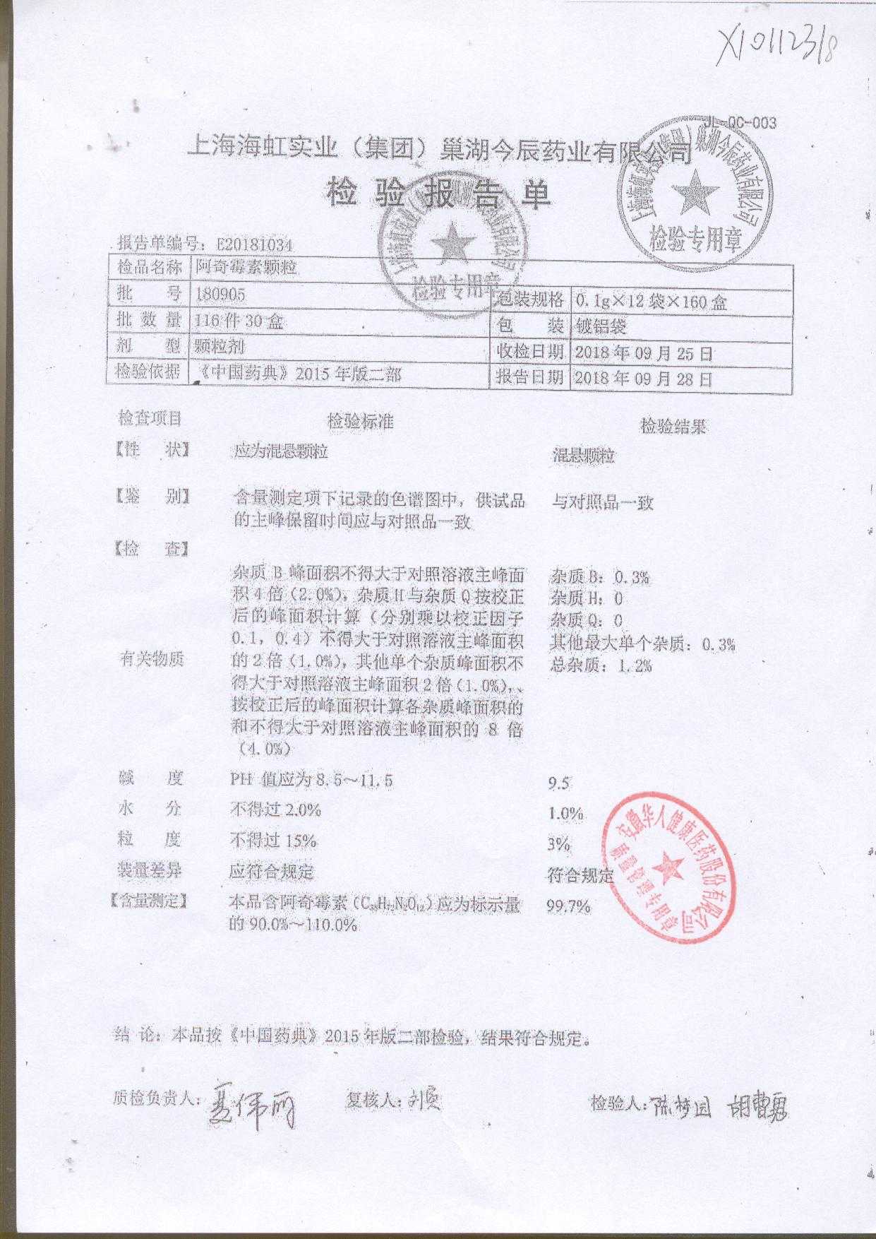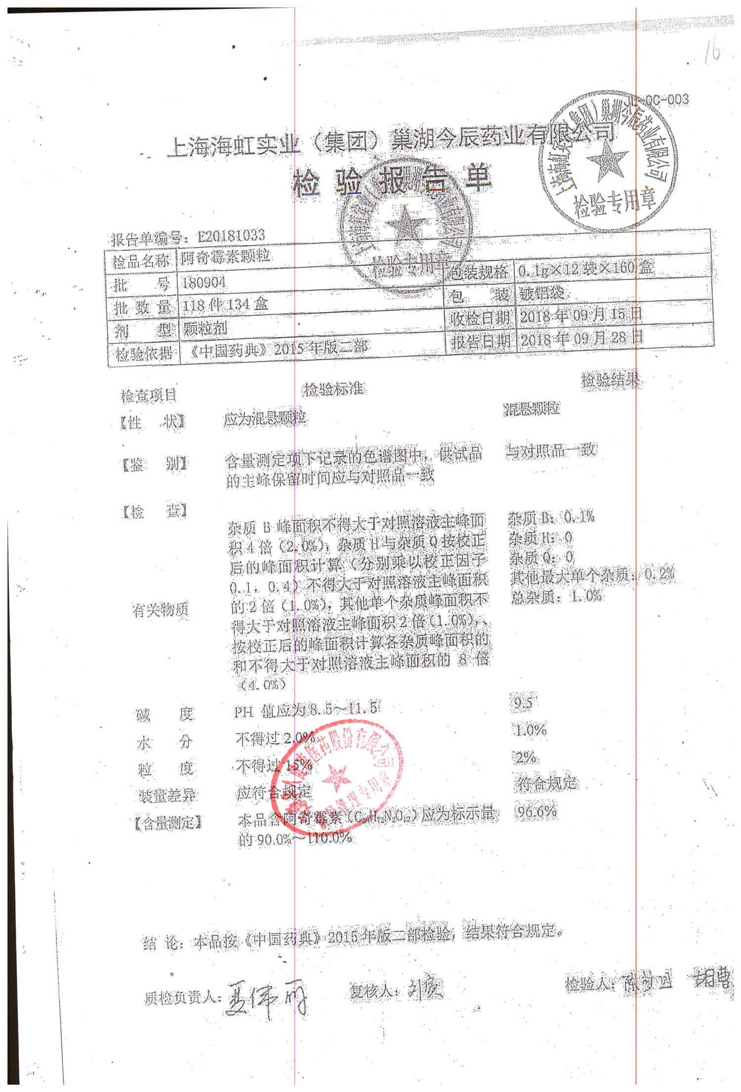 阿奇霉素顆粒 | 0.1g-12袋 | 180903 | 查看詳情 |
