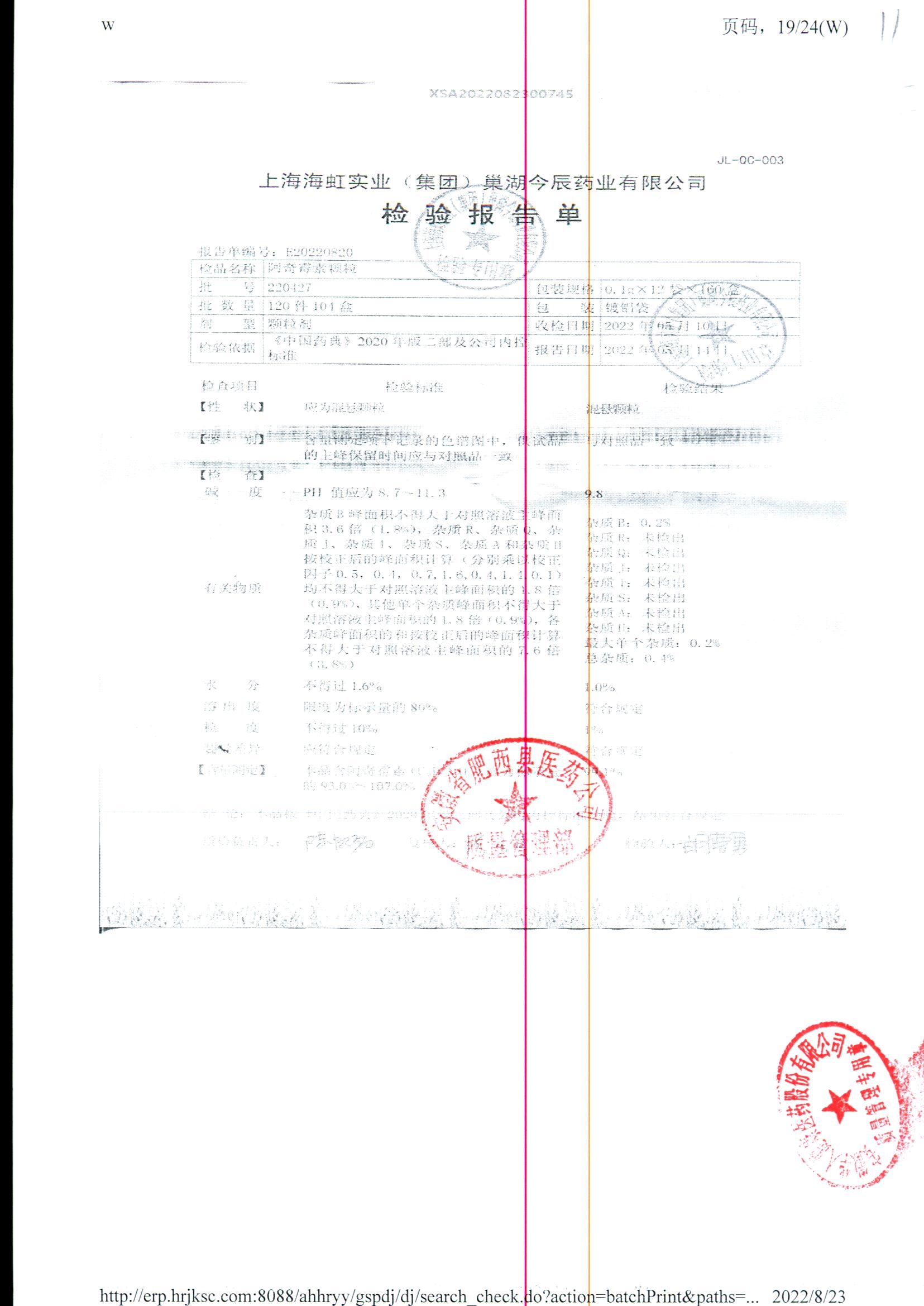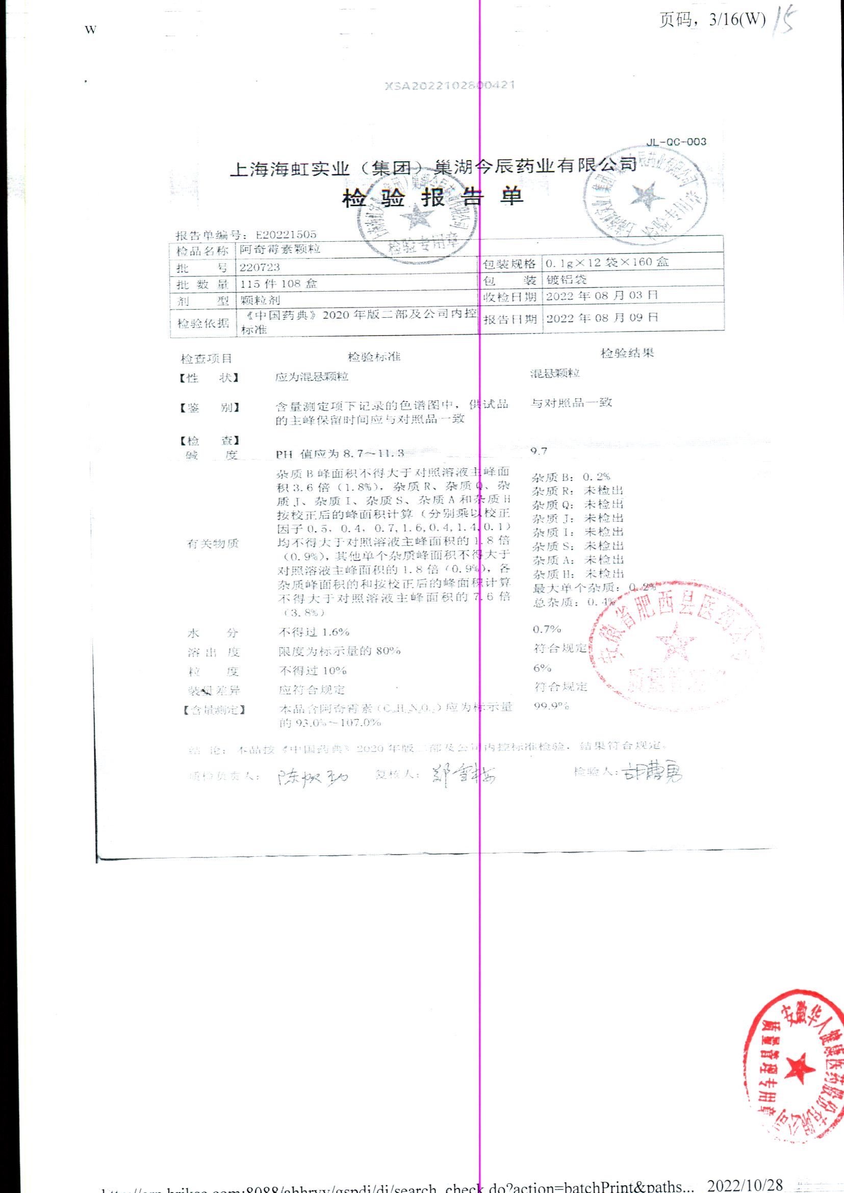 名稱 | 規(guī)格 | 批號 | 藥檢報告 |