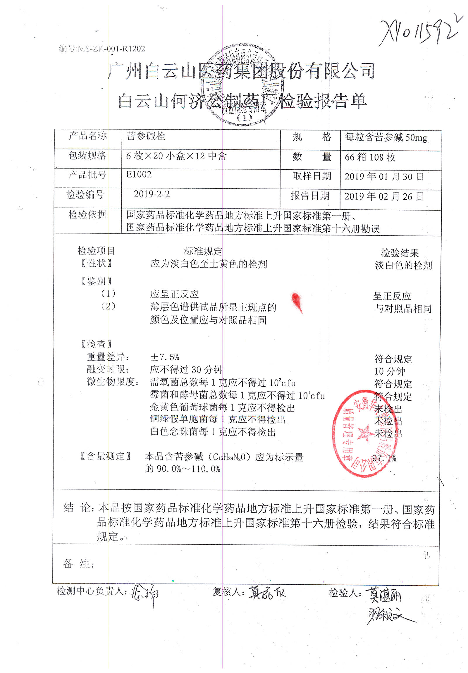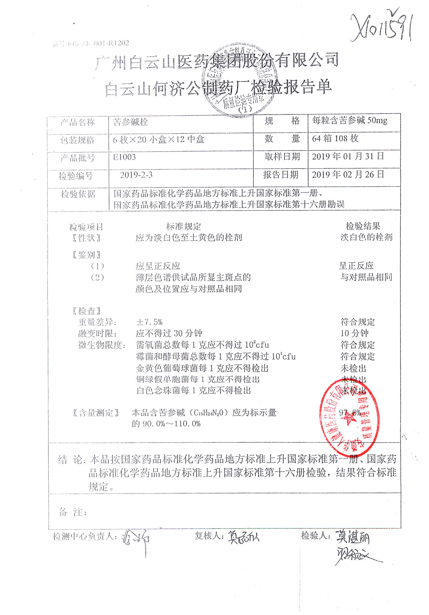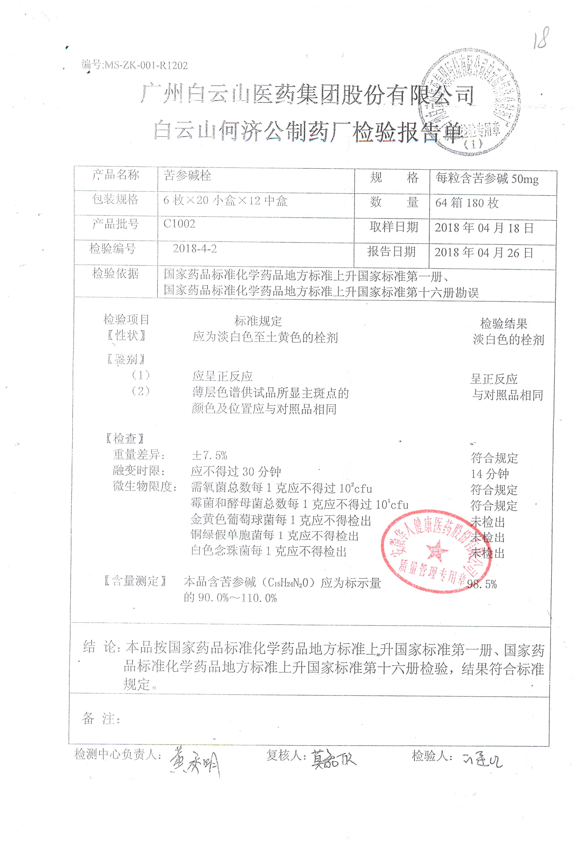 名稱 | 規(guī)格 | 批號(hào) | 藥檢報(bào)告 |