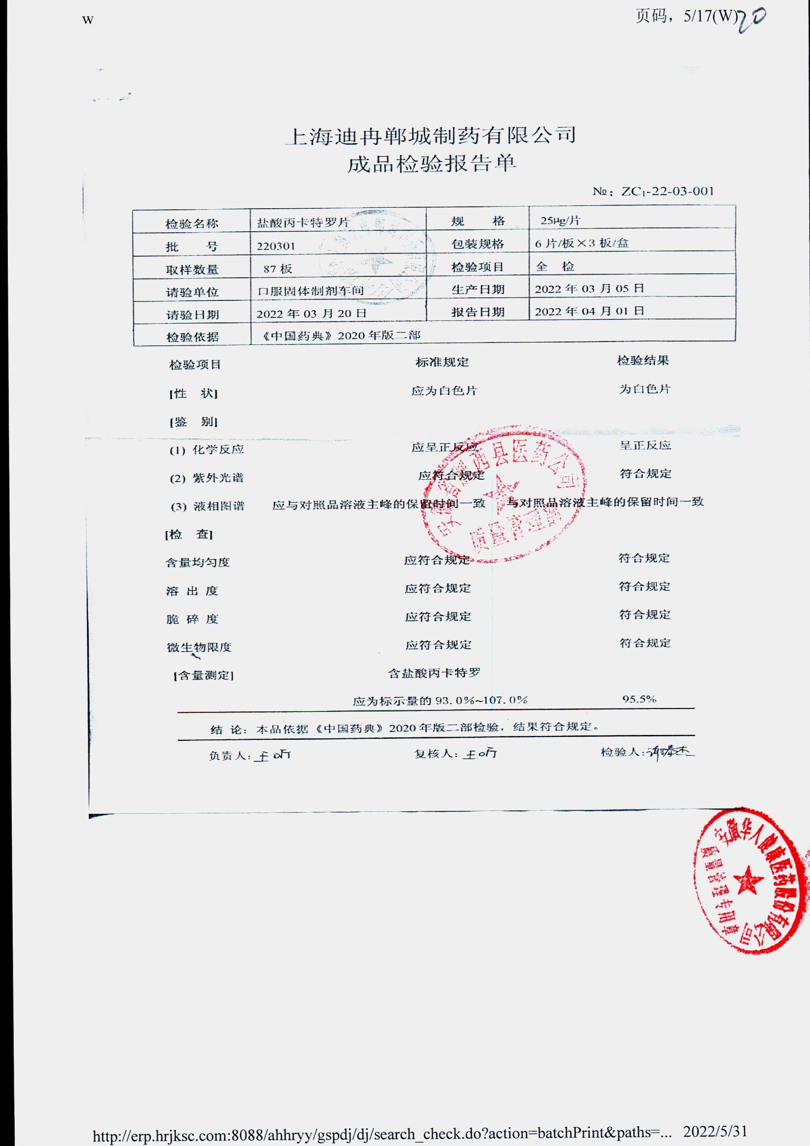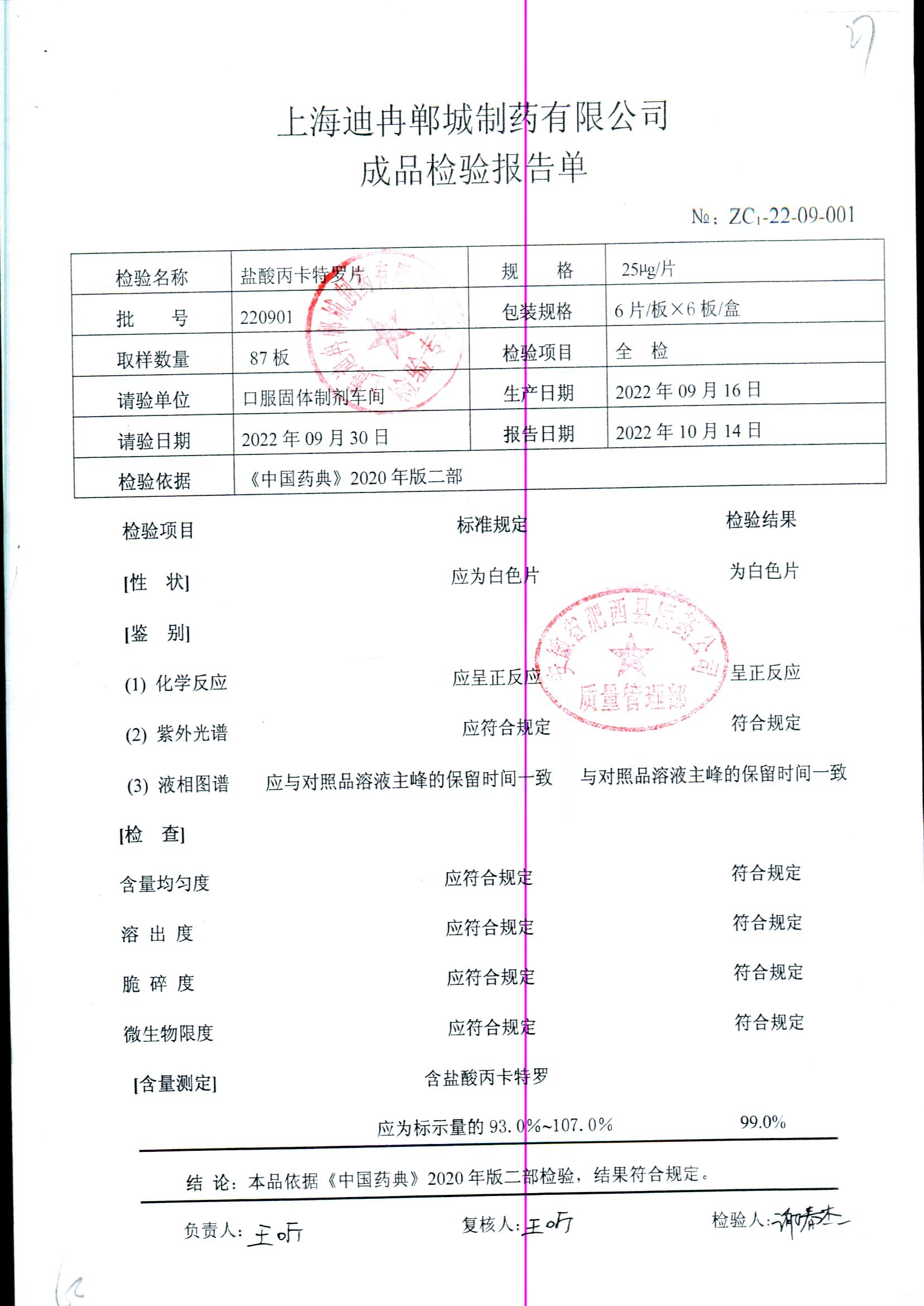 鹽酸丙卡特羅片 | 25mg*6s | 220301 | 查看詳情 |