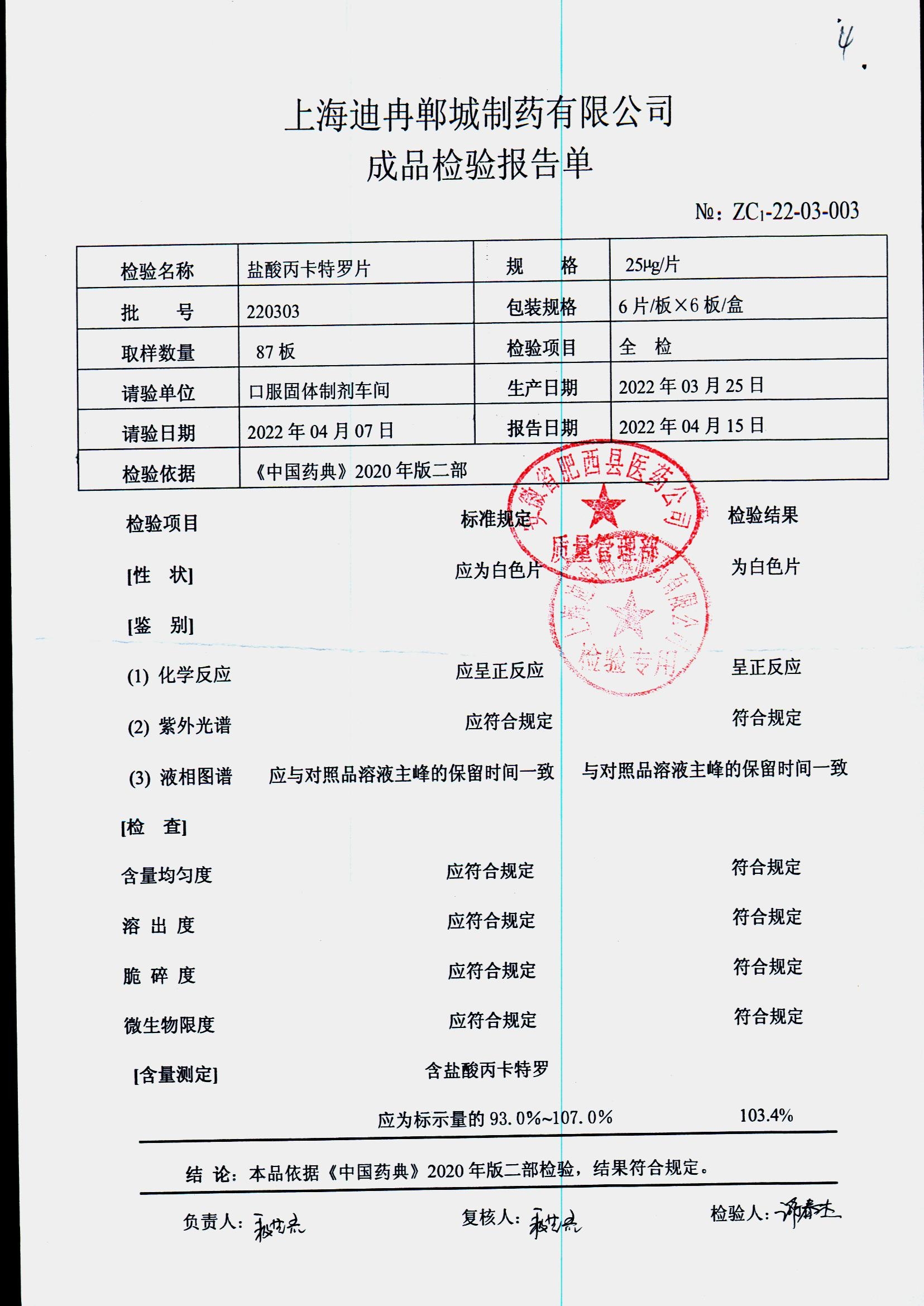 鹽酸丙卡特羅片 | 25mg*6s | 220303 | 查看詳情 |