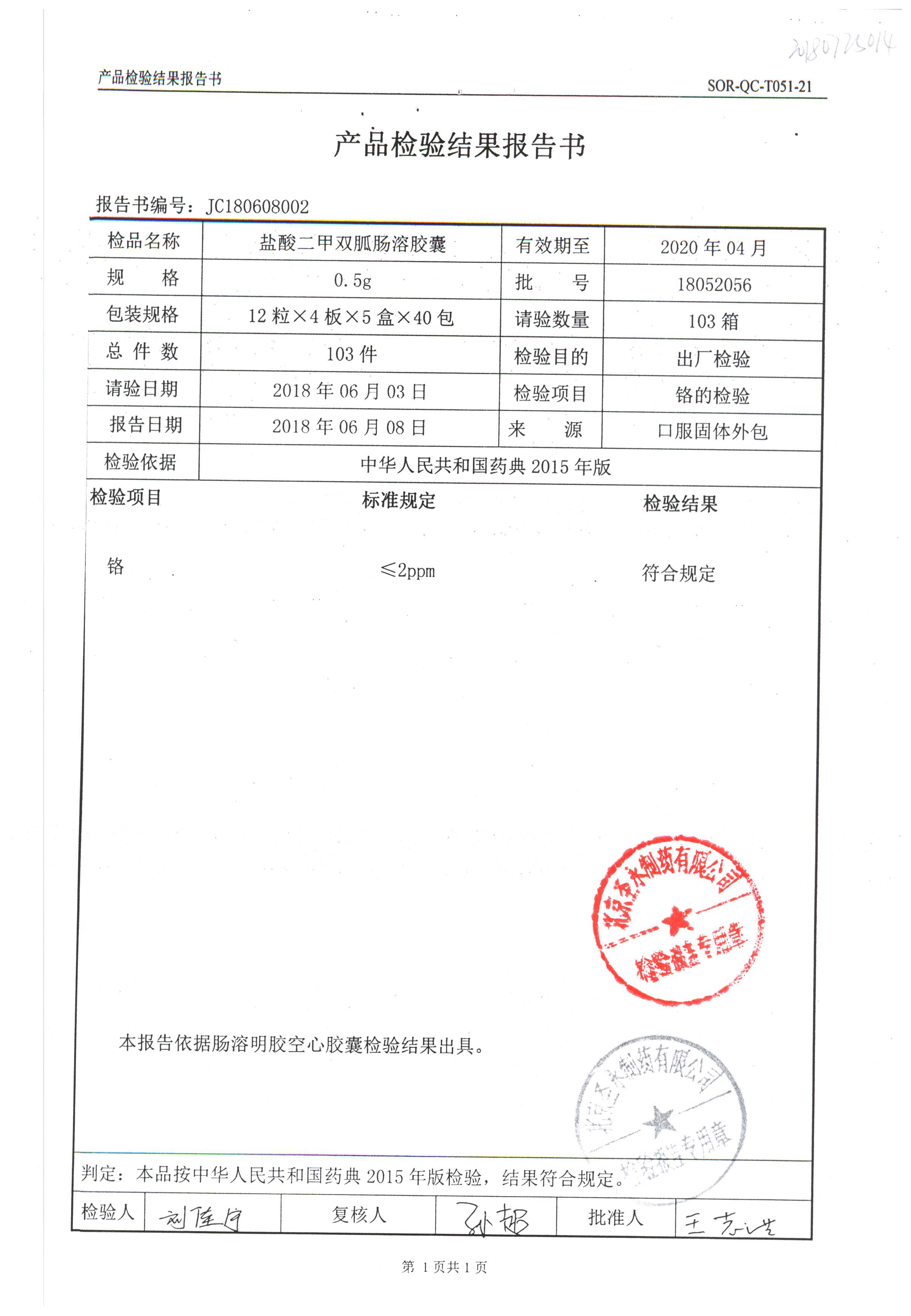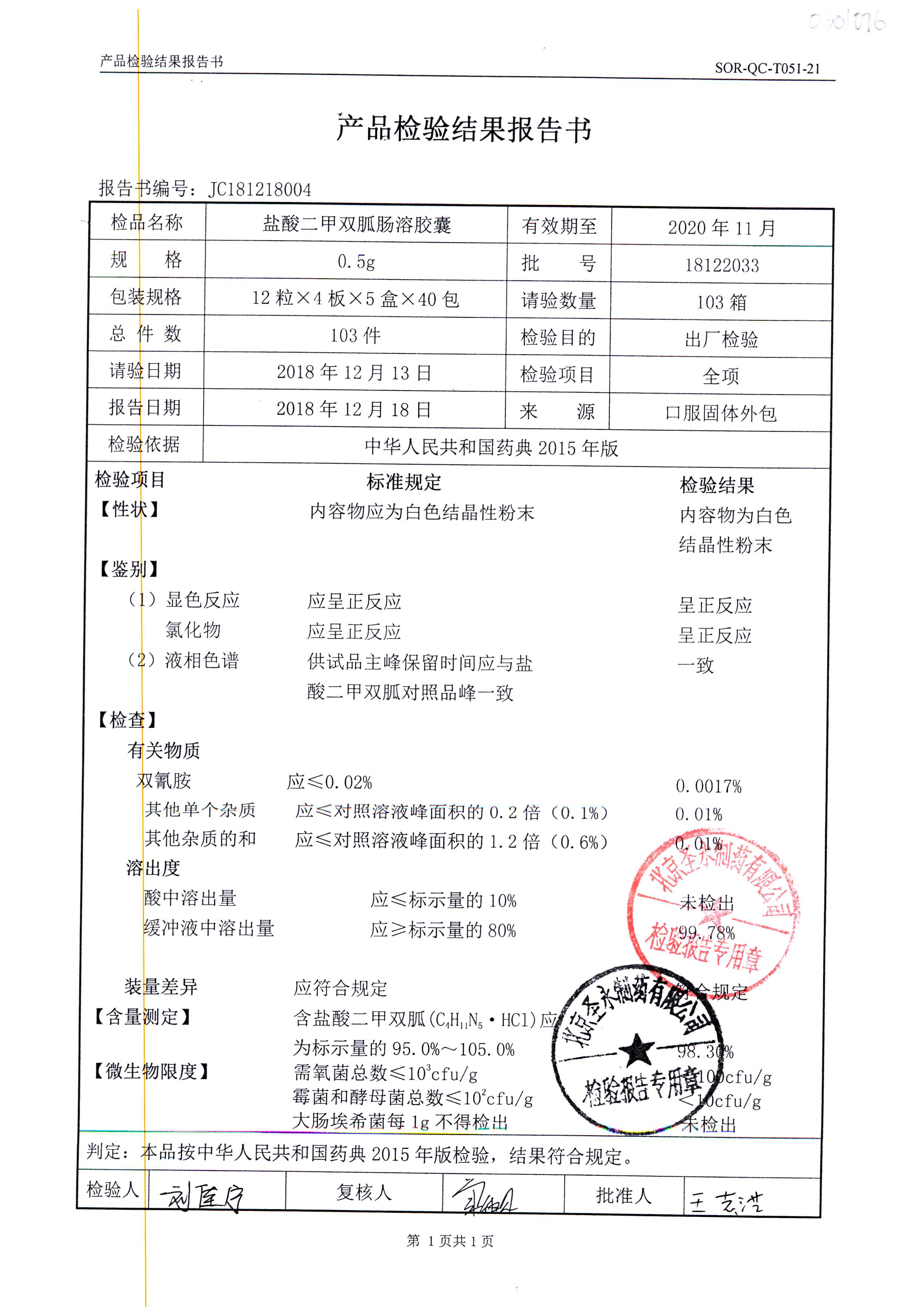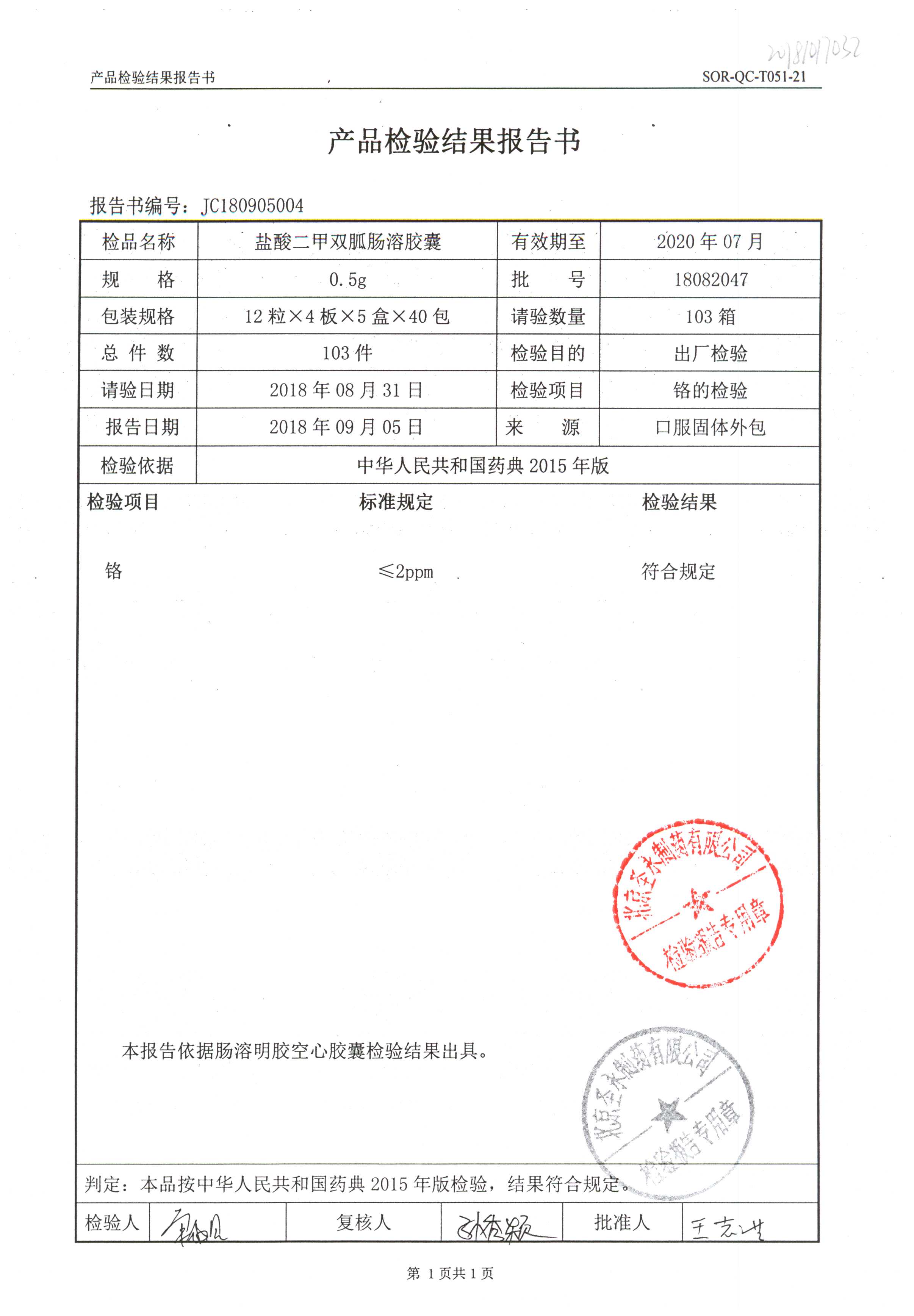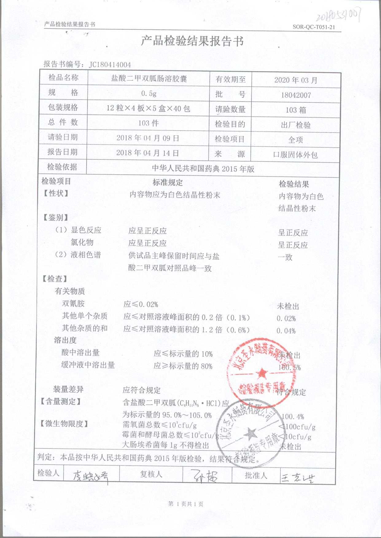 鹽酸二甲雙胍腸溶膠囊 | 0.5g*48s | 18042007(1/2) | 查看詳情 |