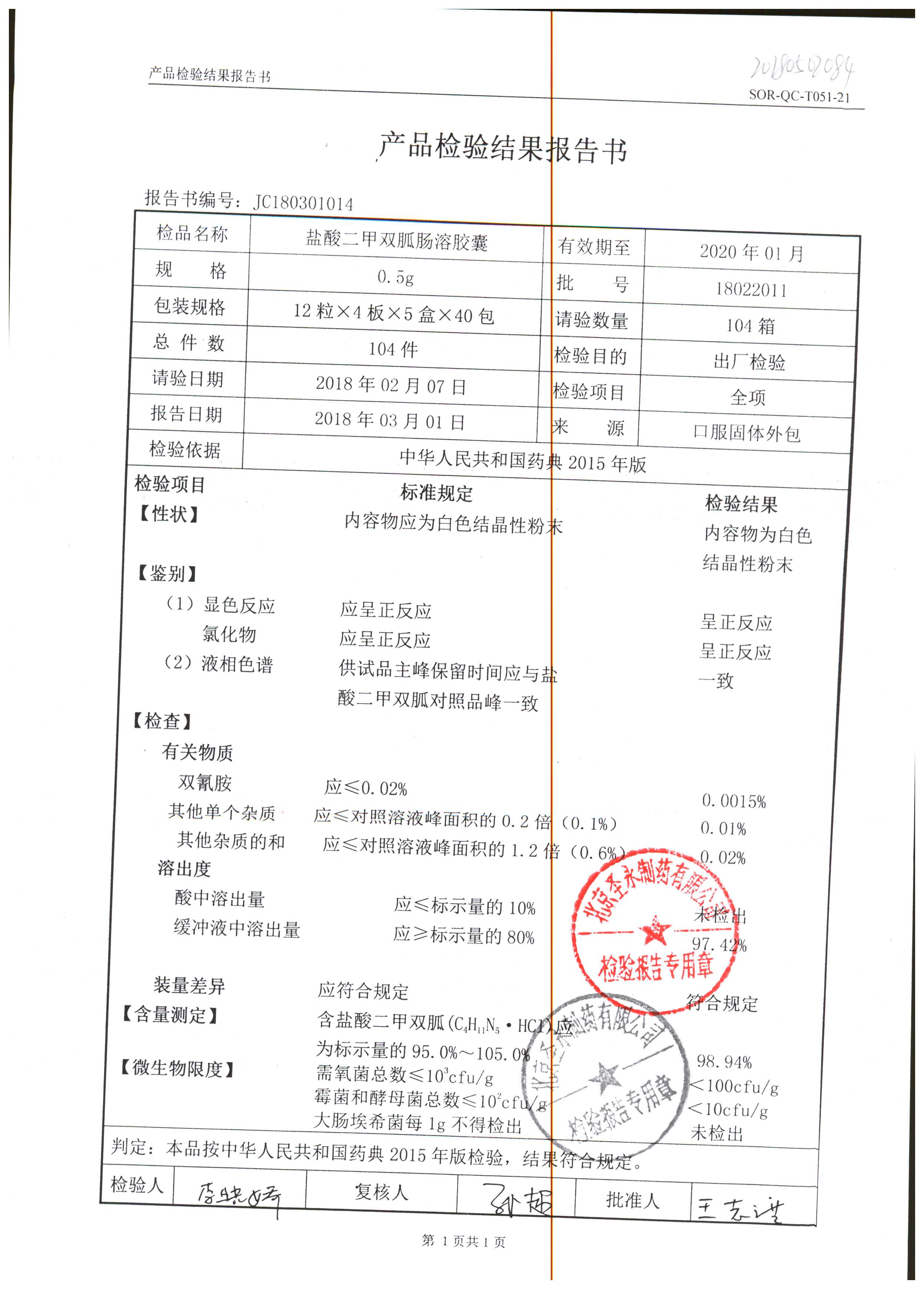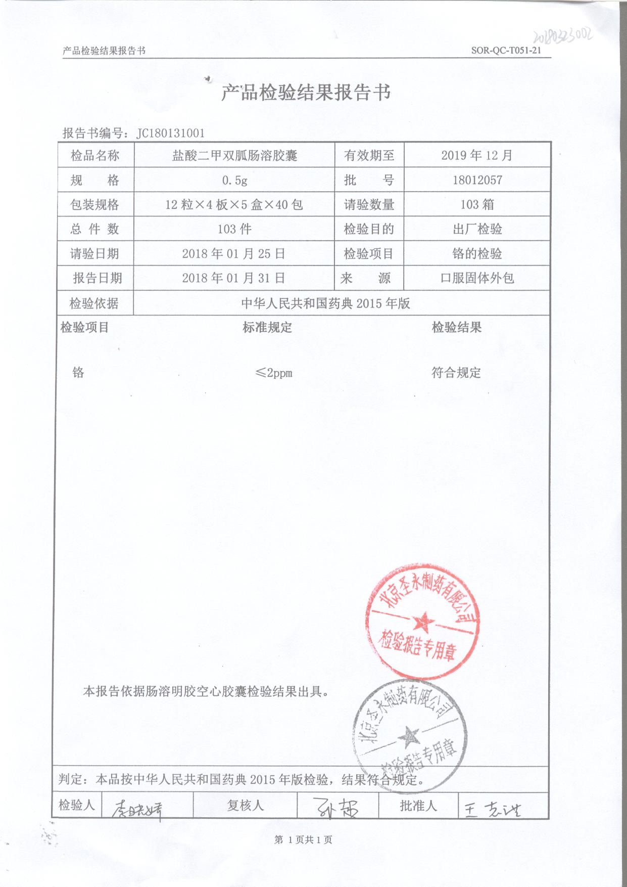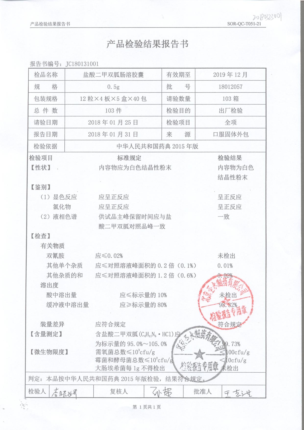 鹽酸二甲雙胍腸溶膠囊 | 0.5g*48s | 18011019(1/2) | 查看詳情 |