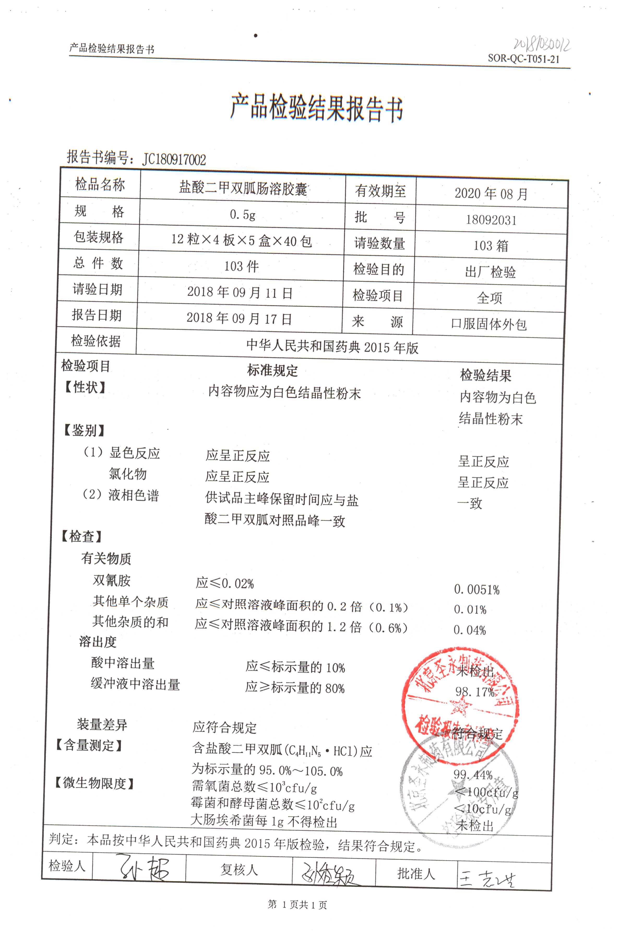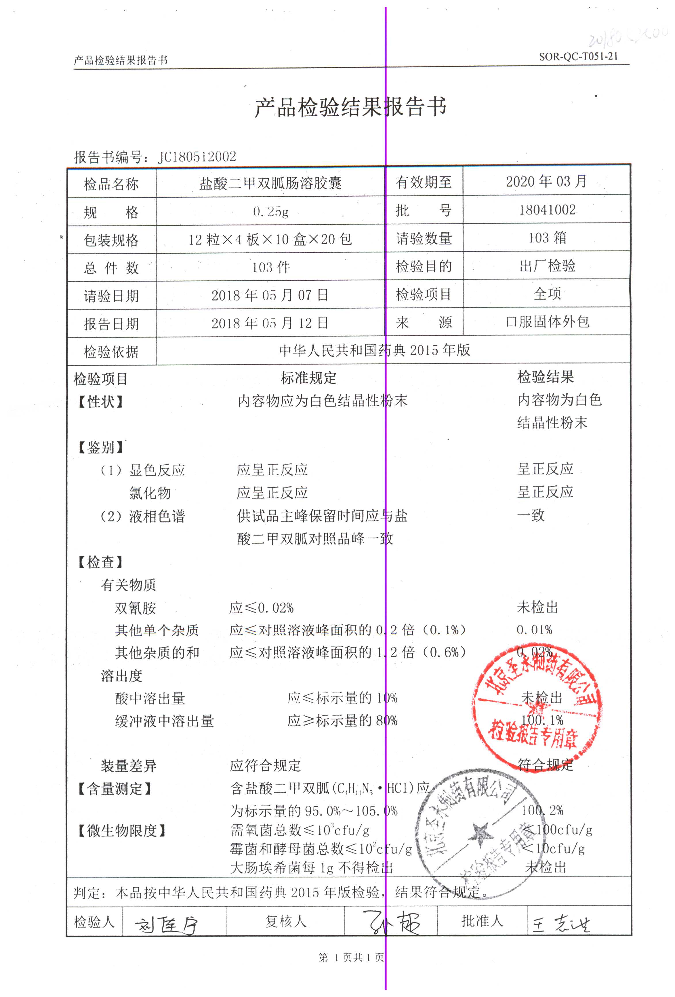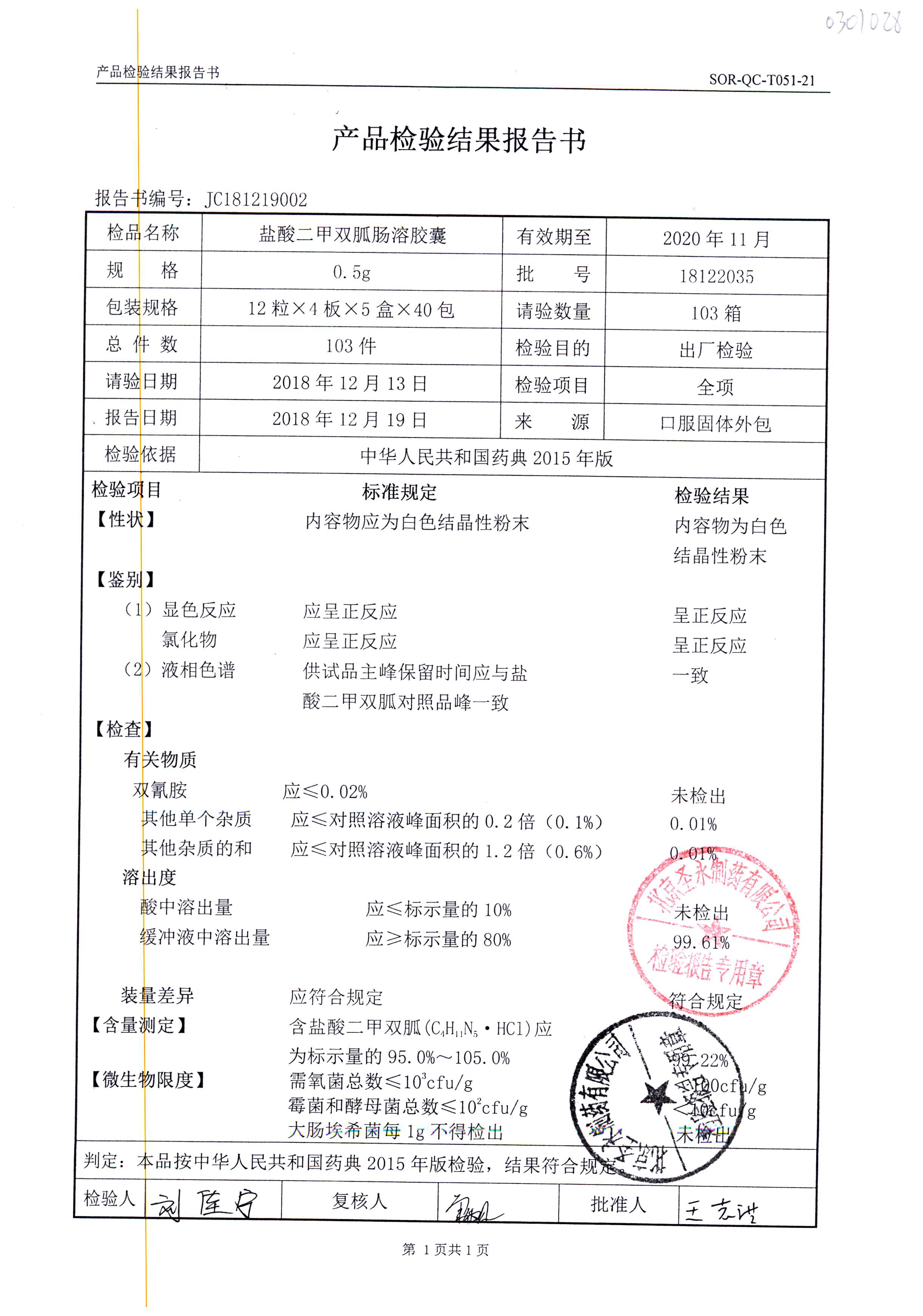 鹽酸二甲雙胍腸溶膠囊 | 0.5g*48s | 18011019(1/2) | 查看詳情 |