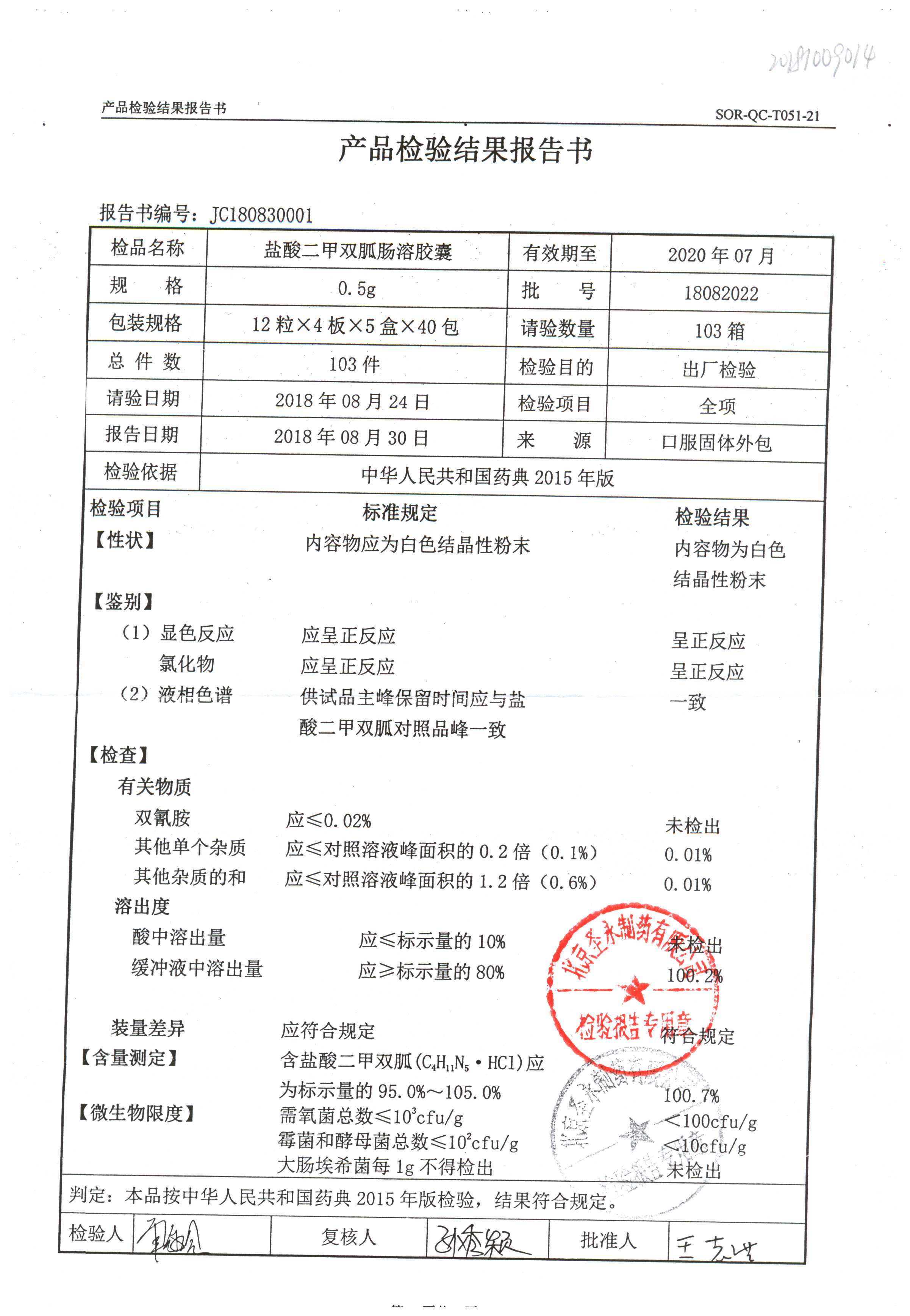 鹽酸二甲雙胍腸溶膠囊 | 0.5g*48s | 18041002(2/2) | 查看詳情 |