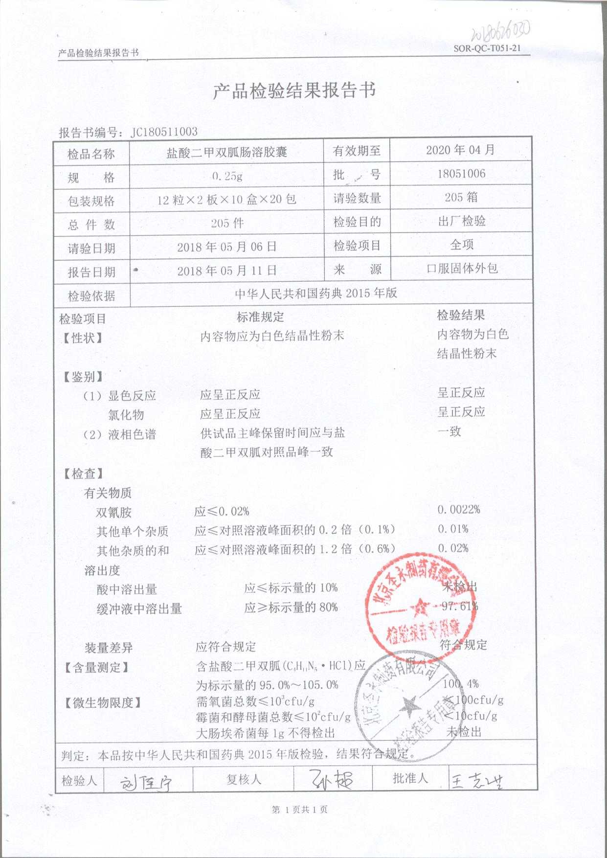鹽酸二甲雙胍腸溶膠囊 | 0.5g*48s | 18122026(2/2) | 查看詳情 |