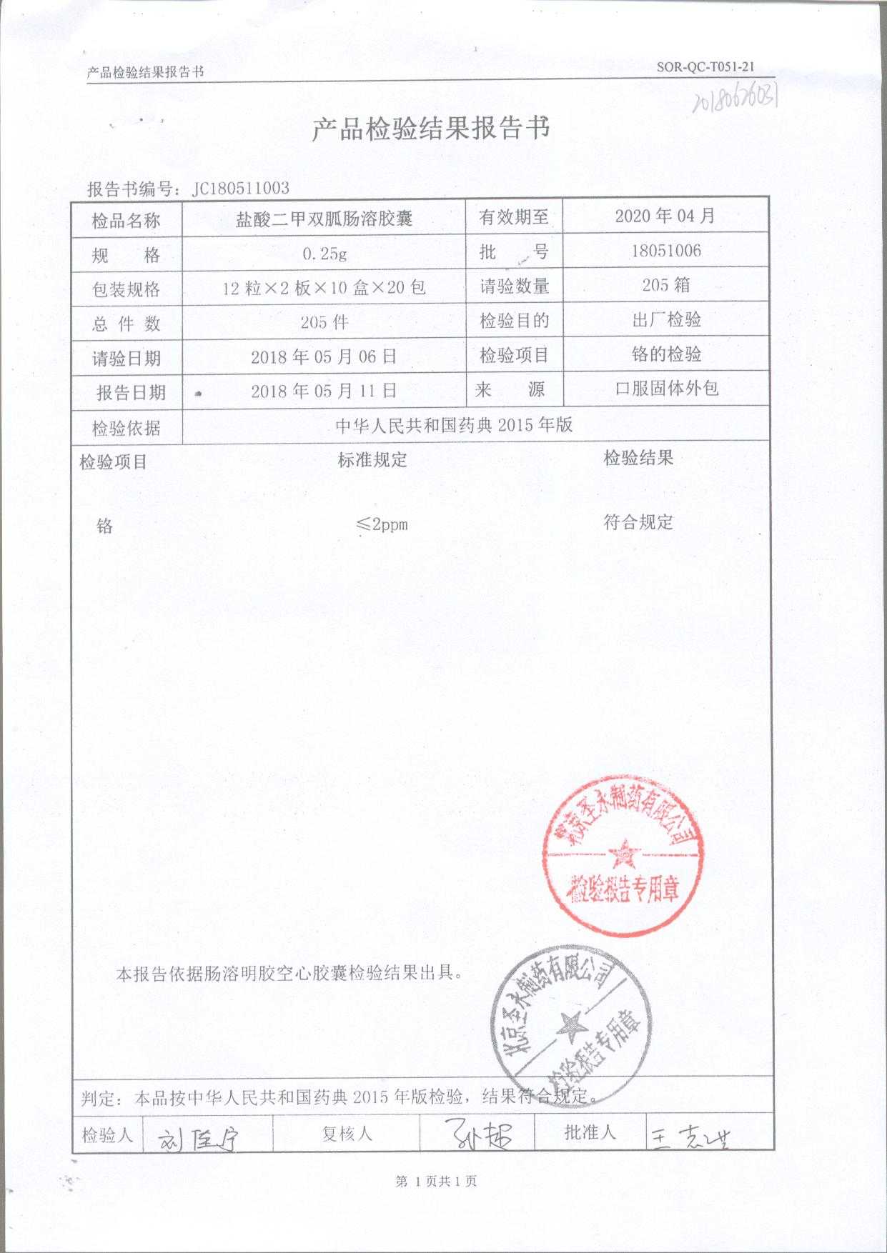 鹽酸二甲雙胍腸溶膠囊 | 0.5g*48s | 18051006(2/2) | 查看詳情 |