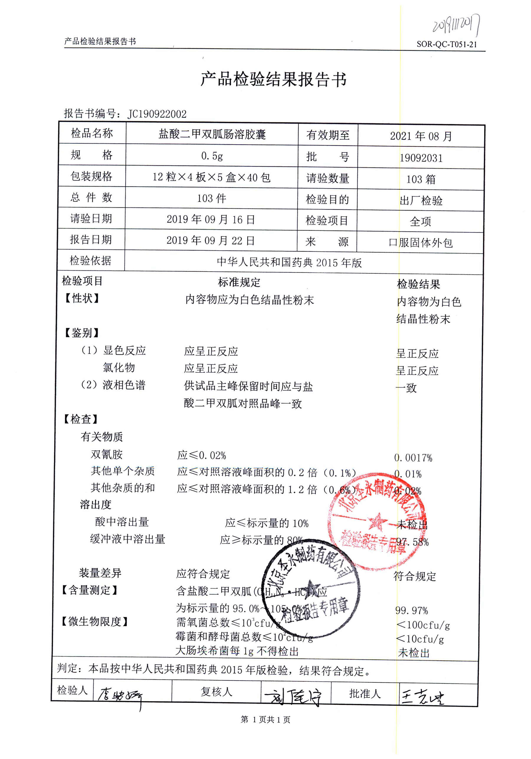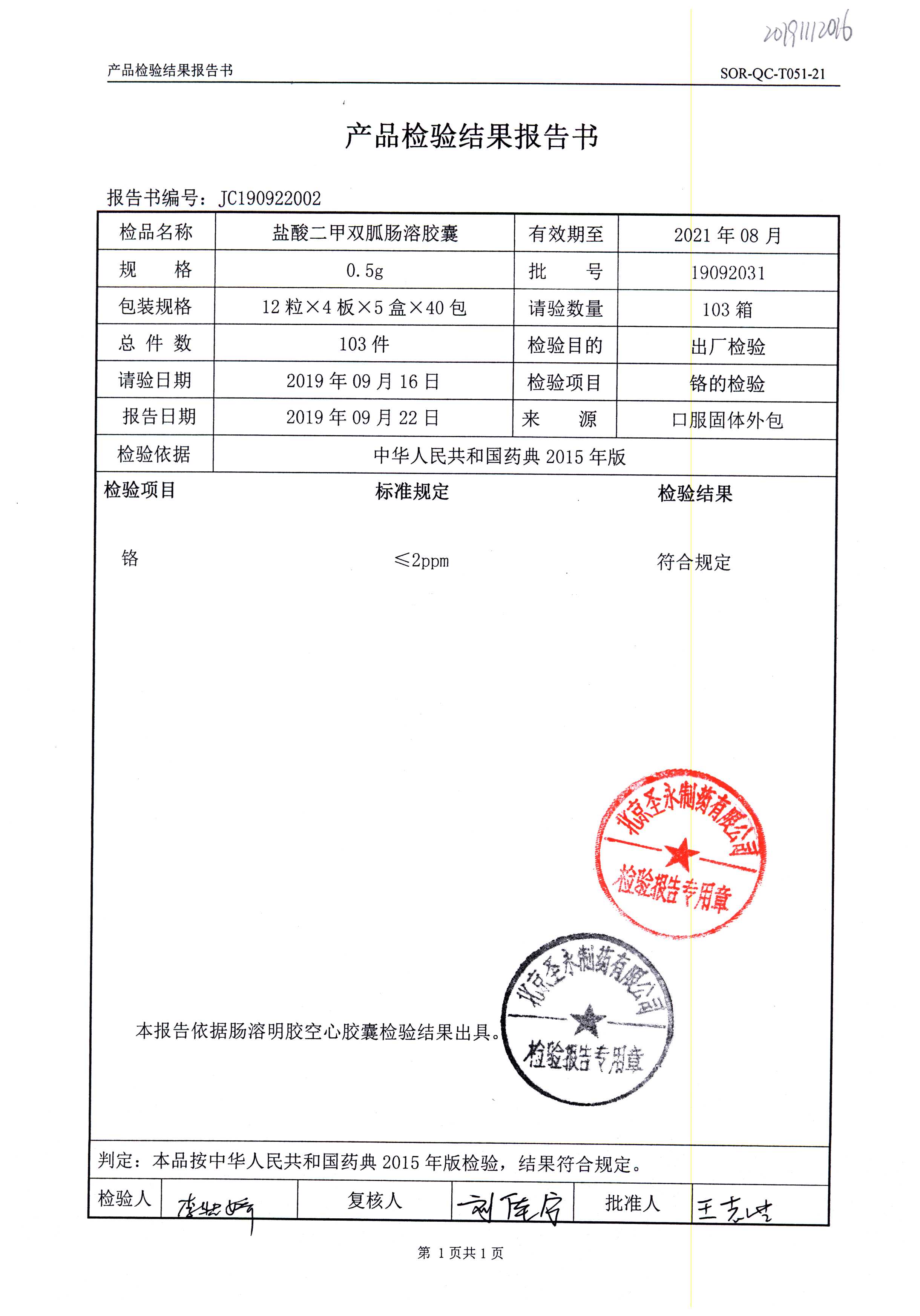 鹽酸二甲雙胍腸溶膠囊 | 0.5g*48s | 19092031(1/2) | 查看詳情 |