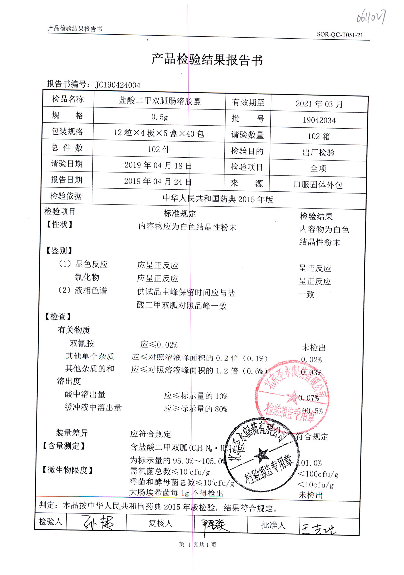 鹽酸二甲雙胍腸溶膠囊 | 0.5g*48s | 19062011(1/2) | 查看詳情 |