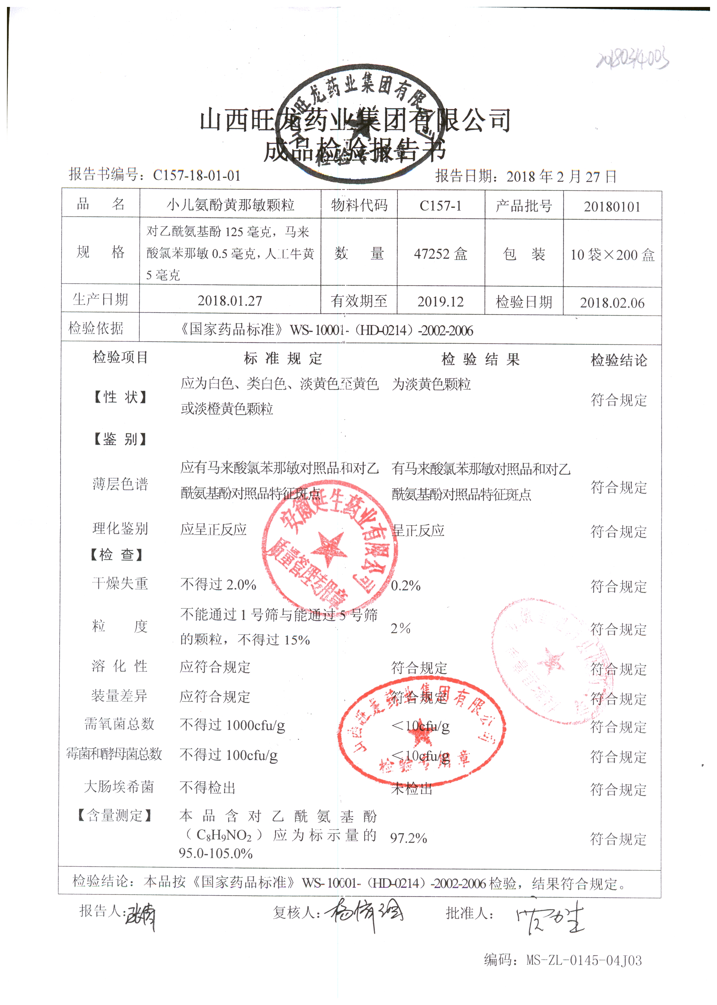 名稱 規(guī)格 批號(hào) 藥檢報(bào)告