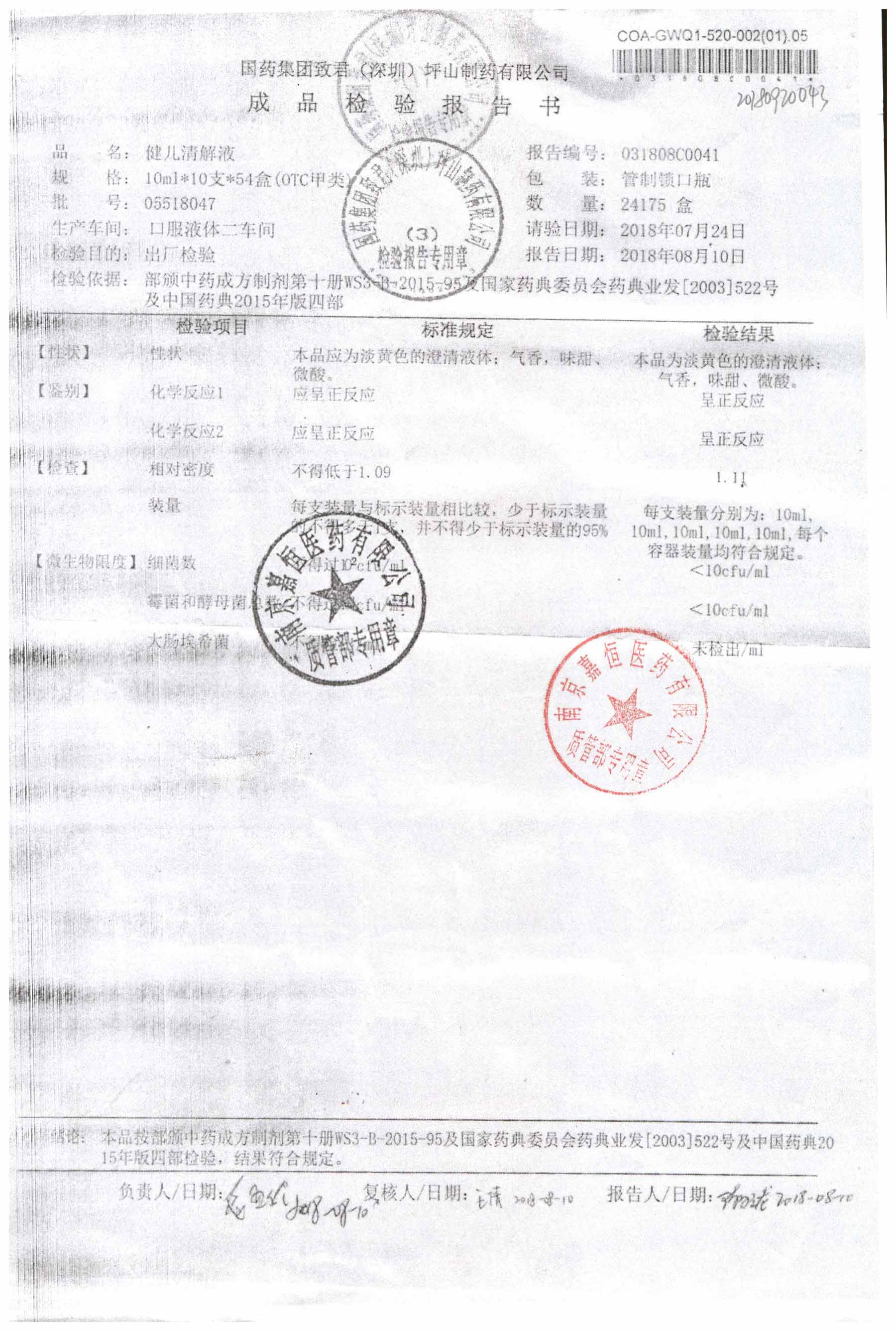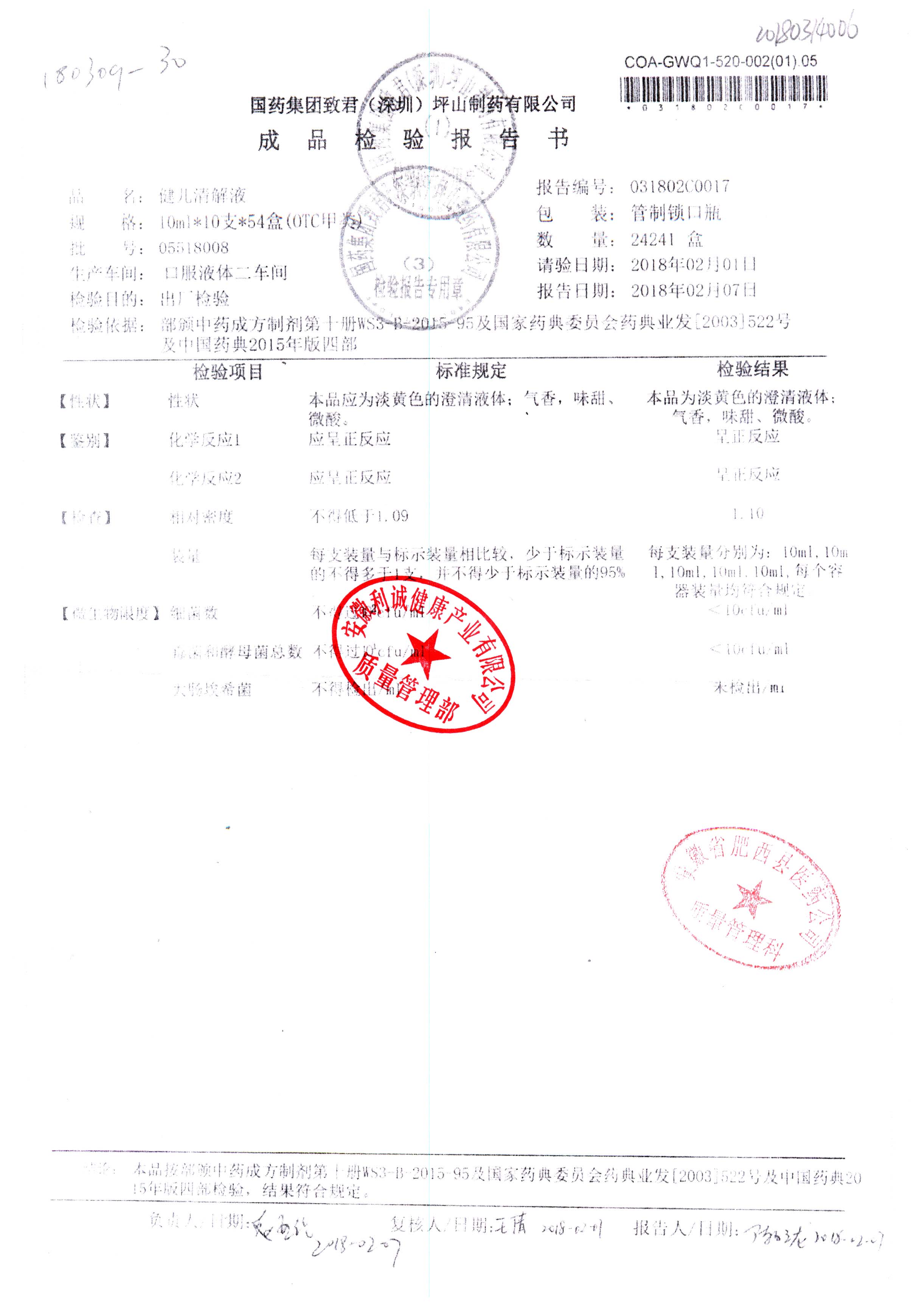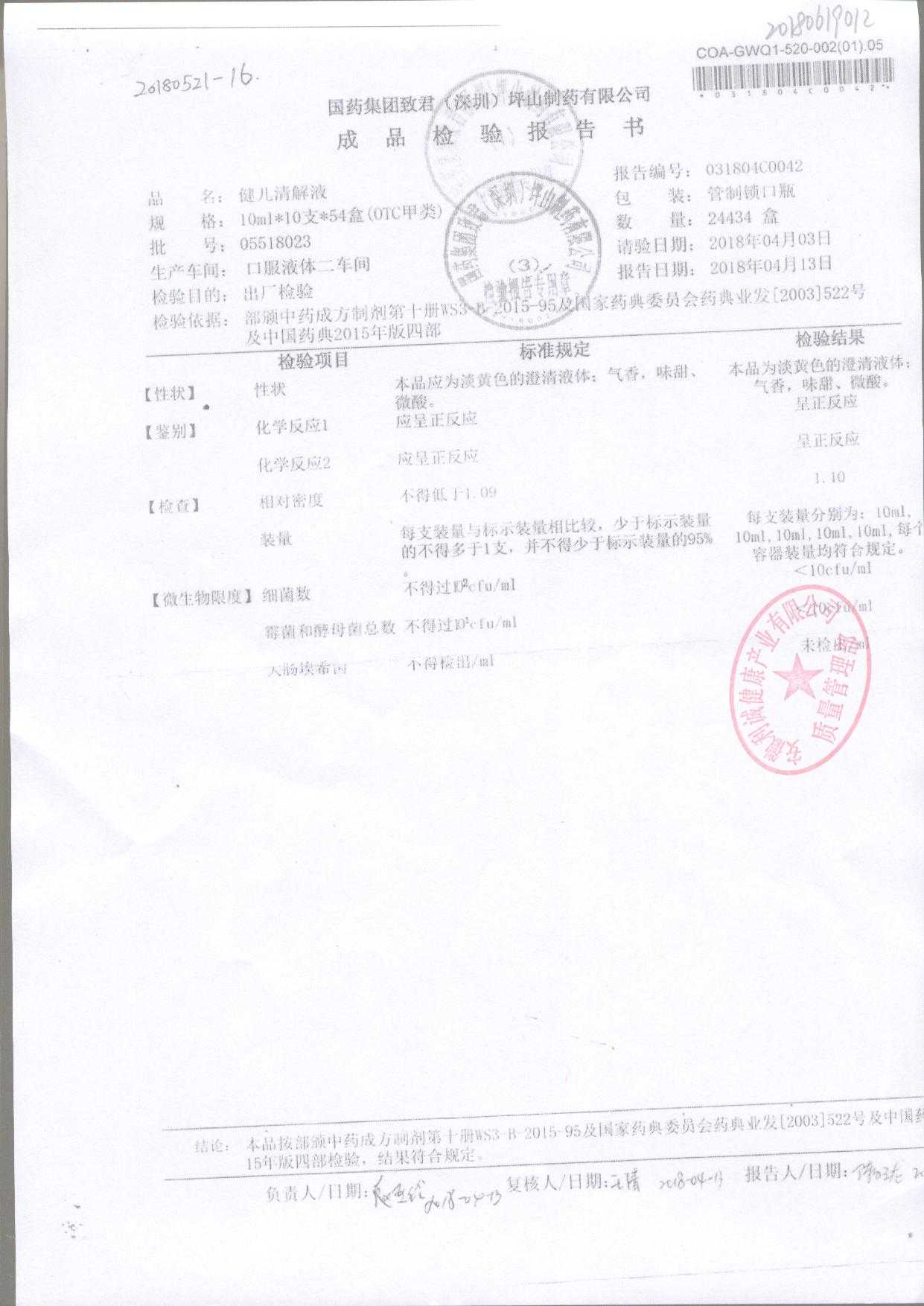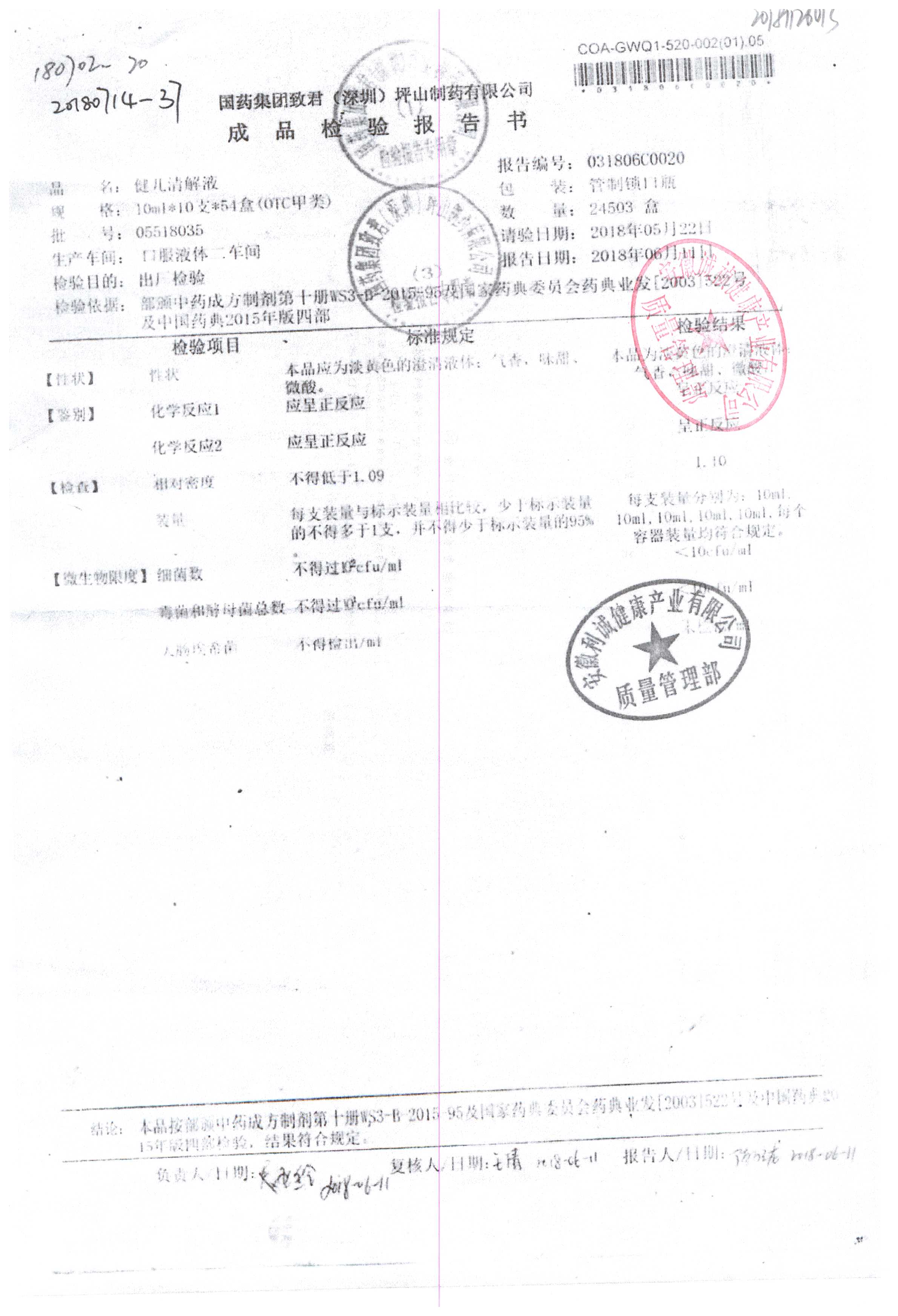 名稱 規(guī)格 批號 藥檢報告