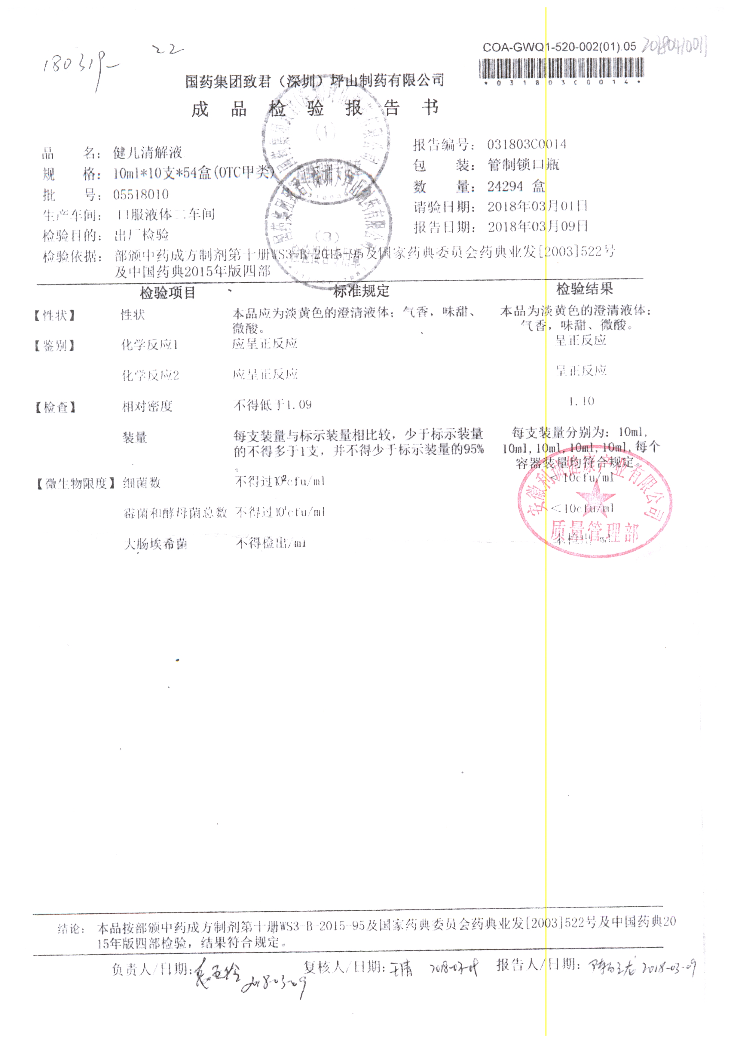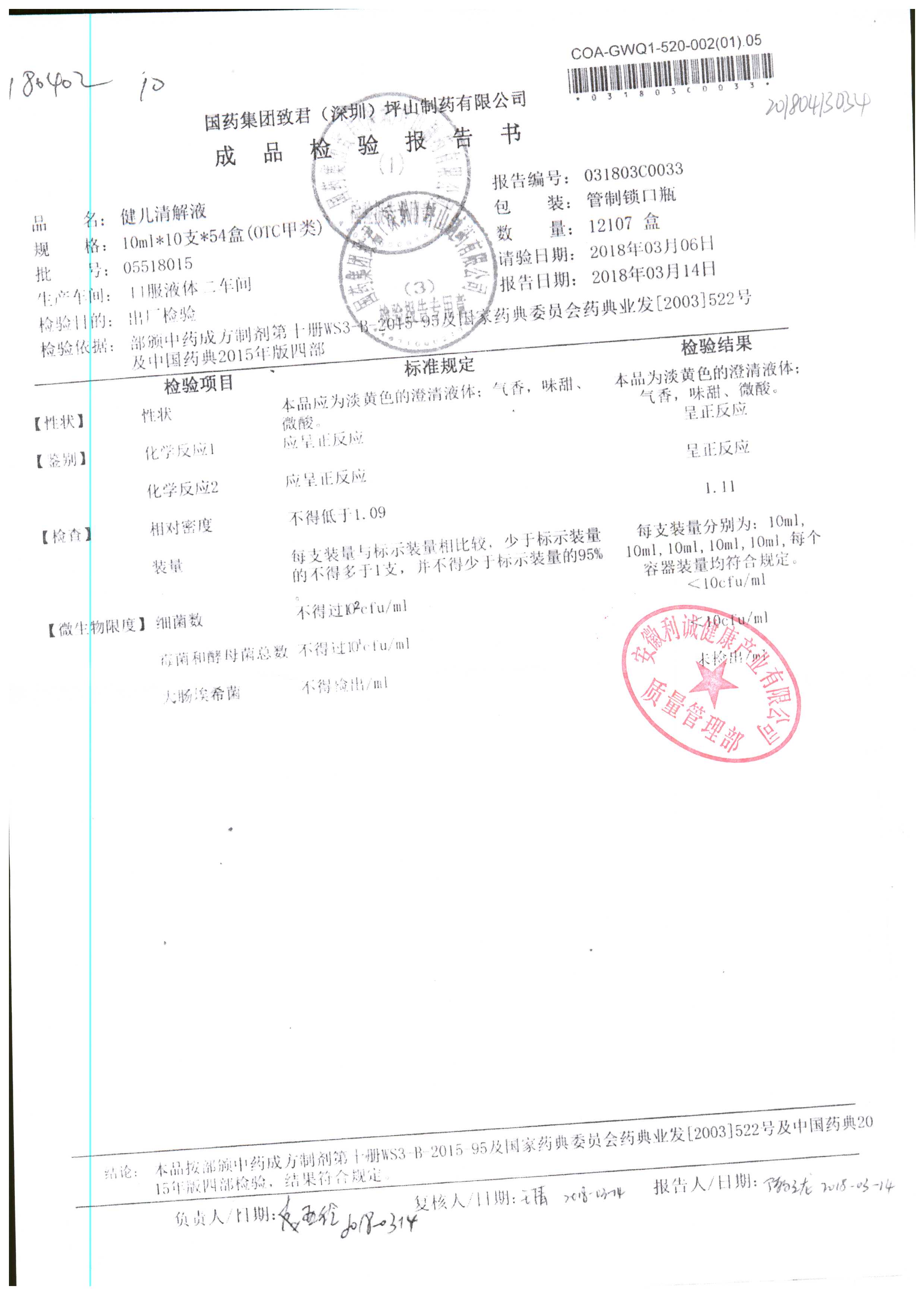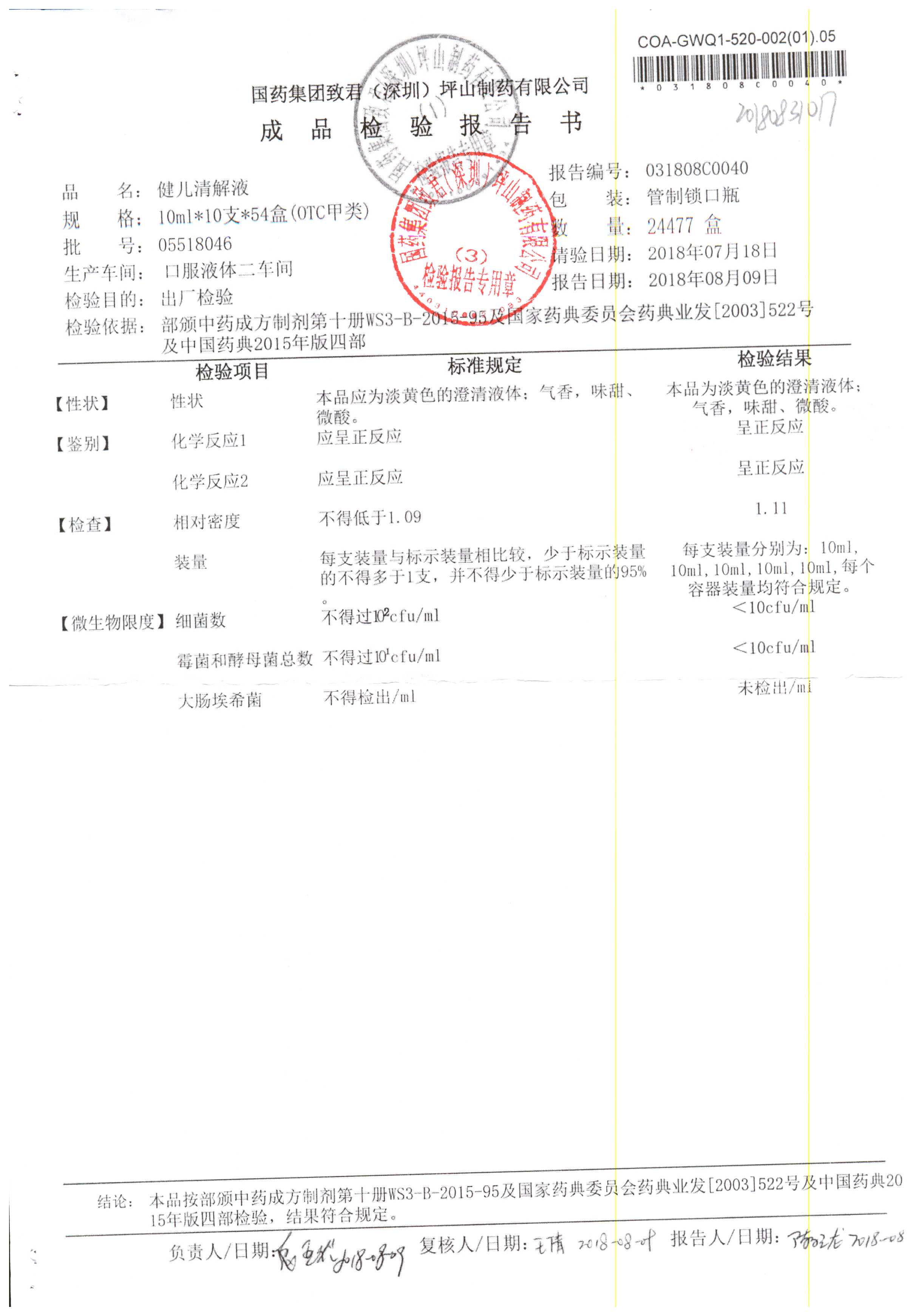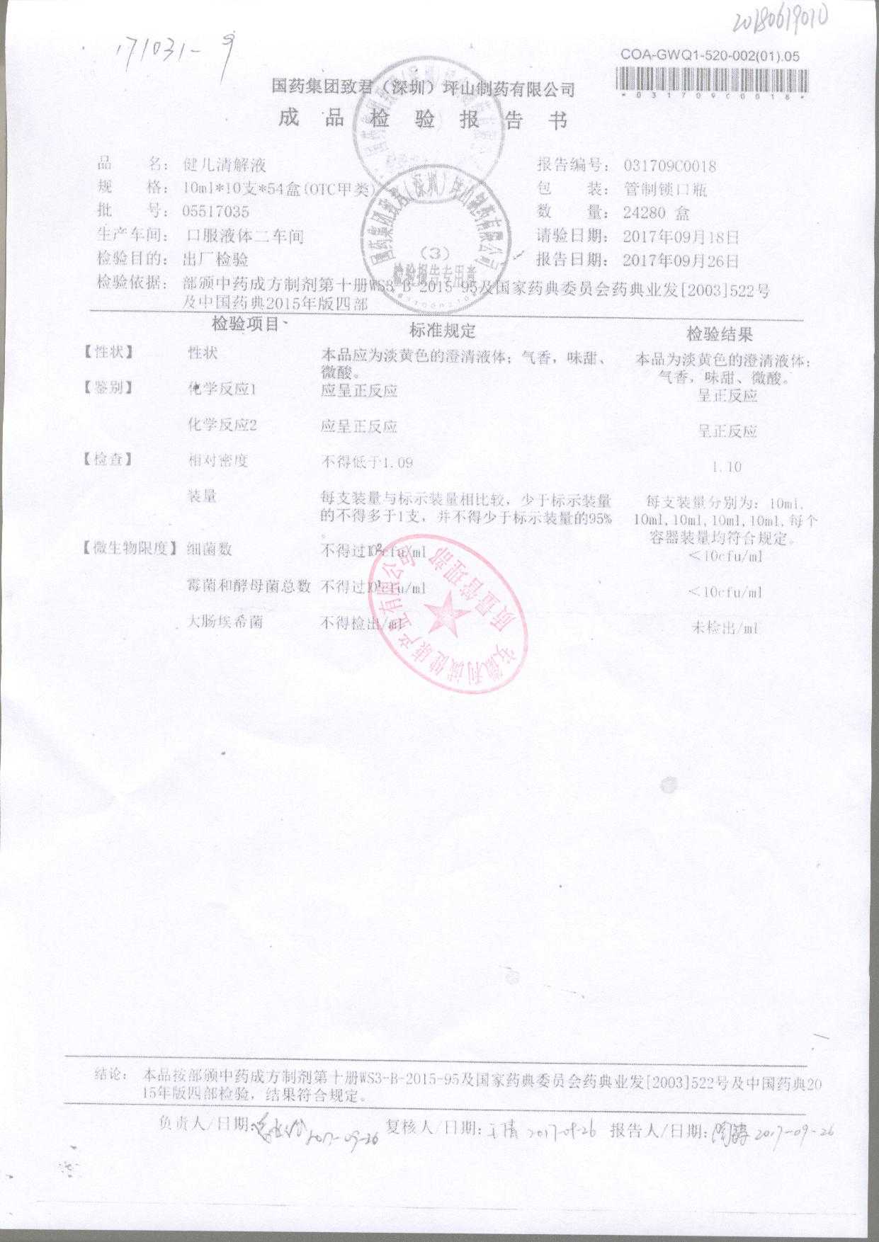 名稱 規(guī)格 批號 藥檢報告