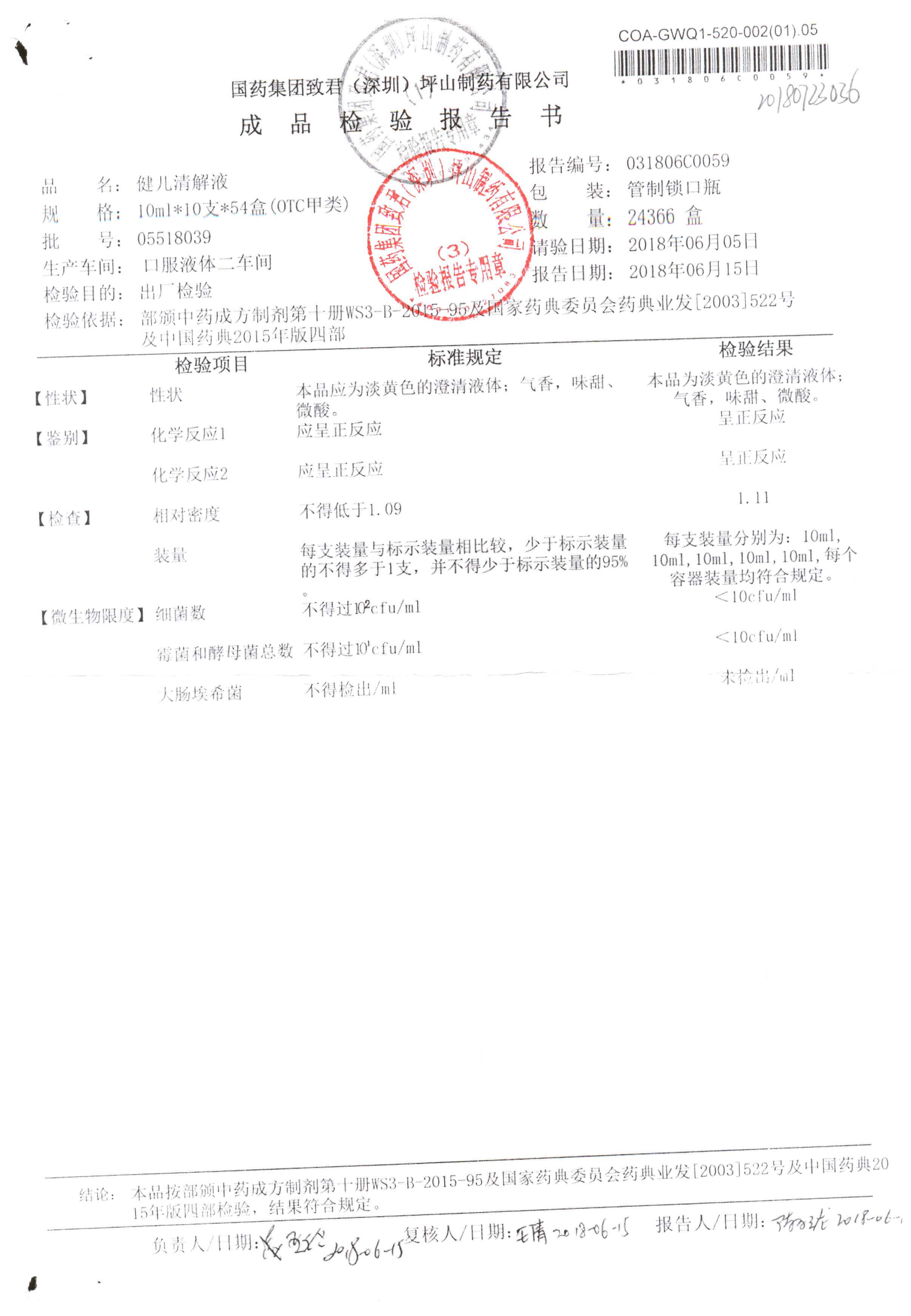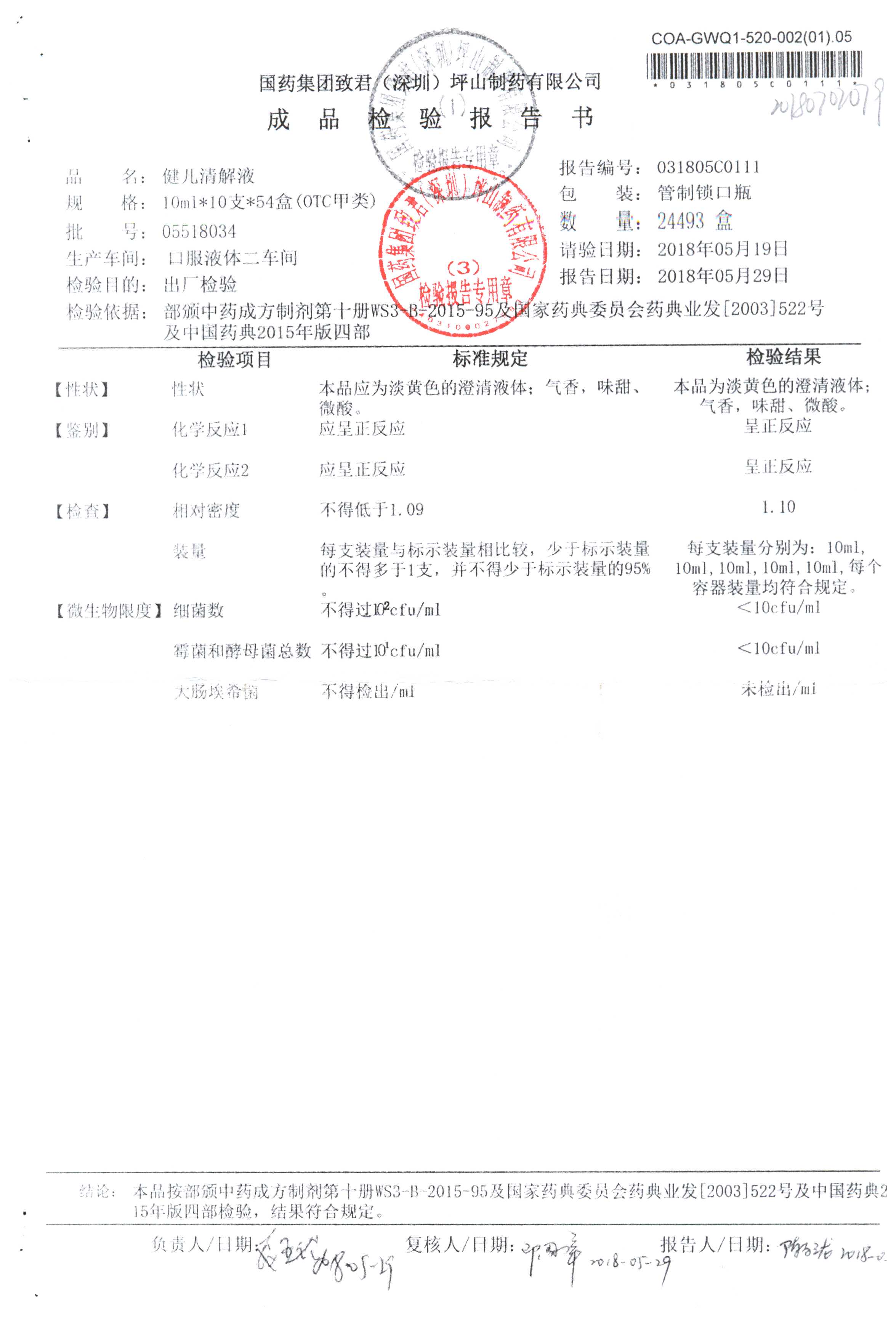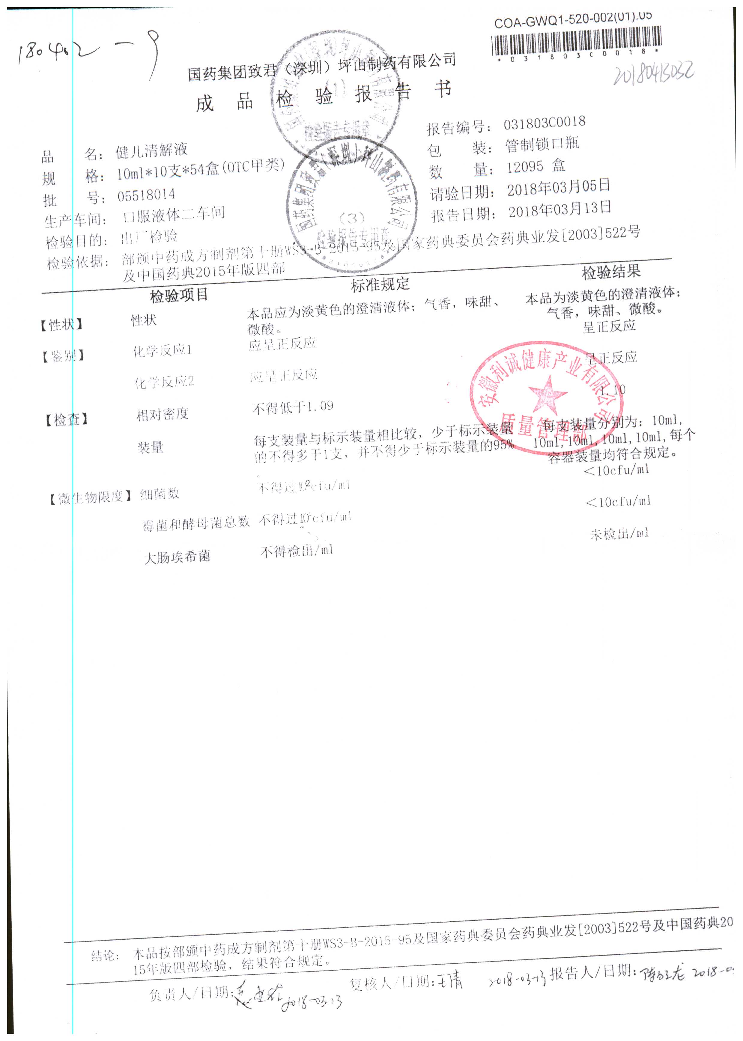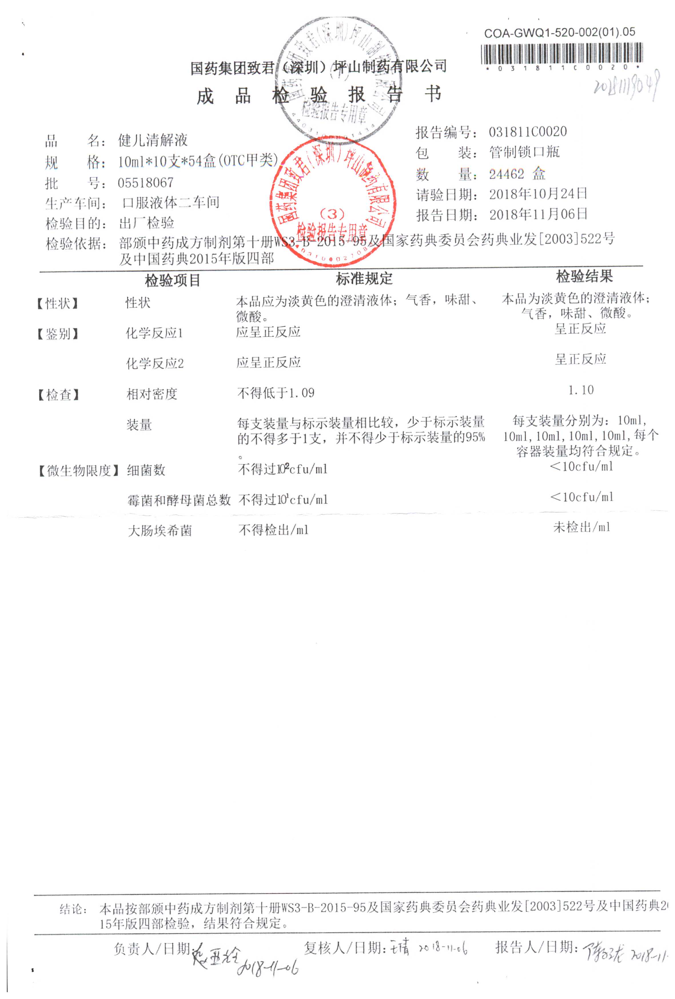 名稱 規(guī)格 批號 藥檢報告