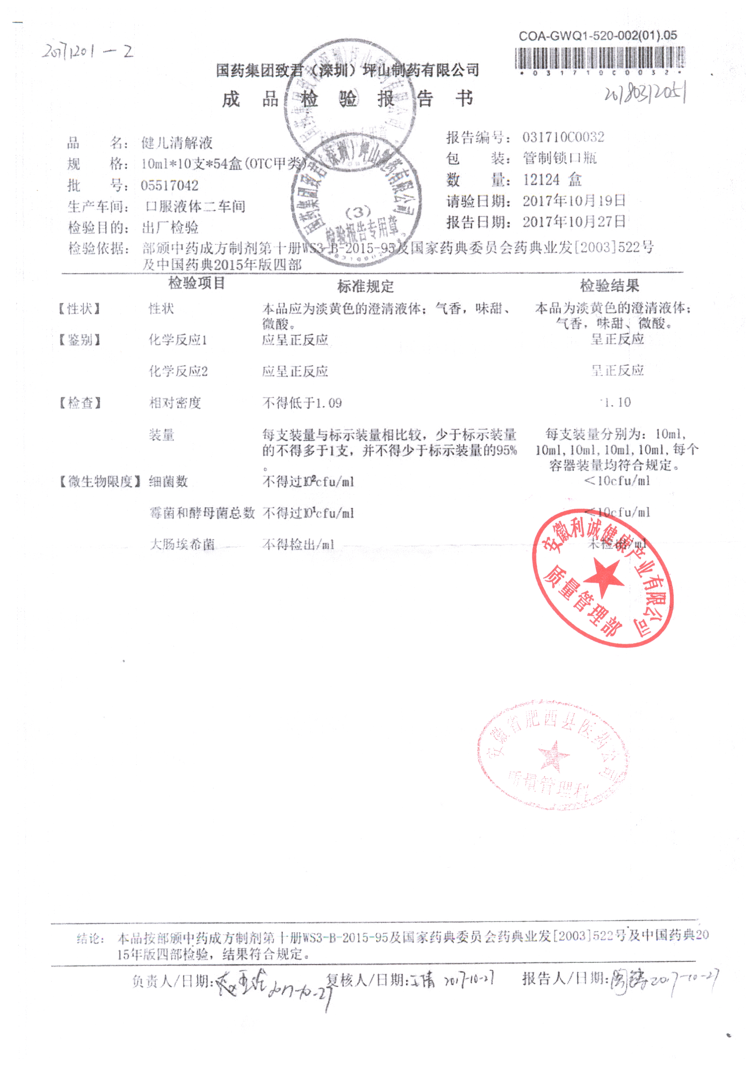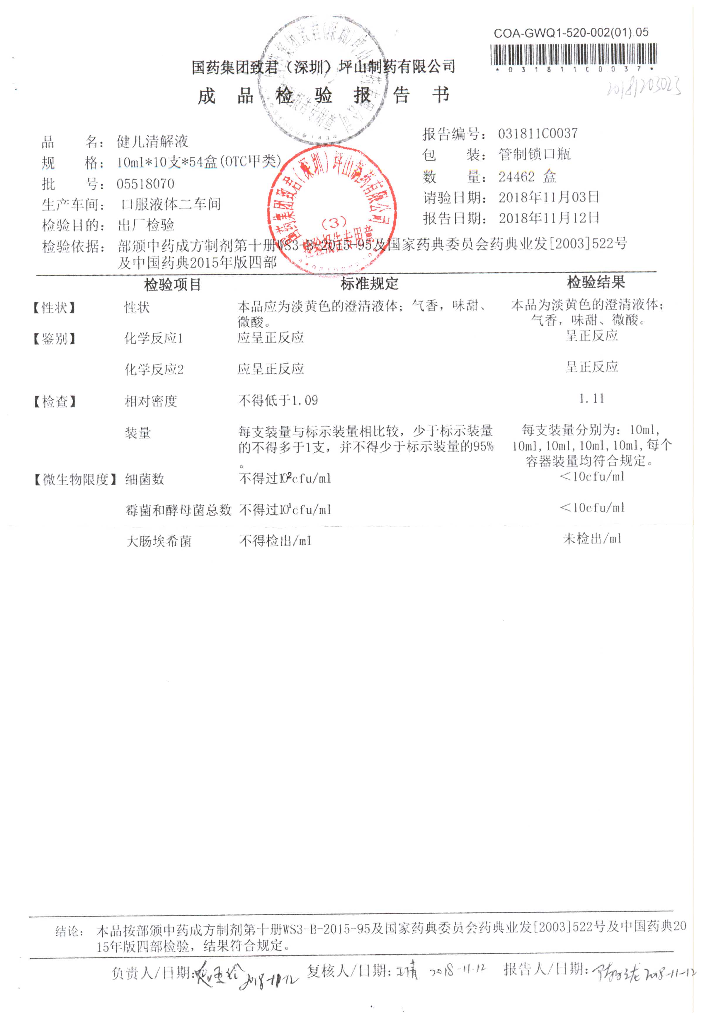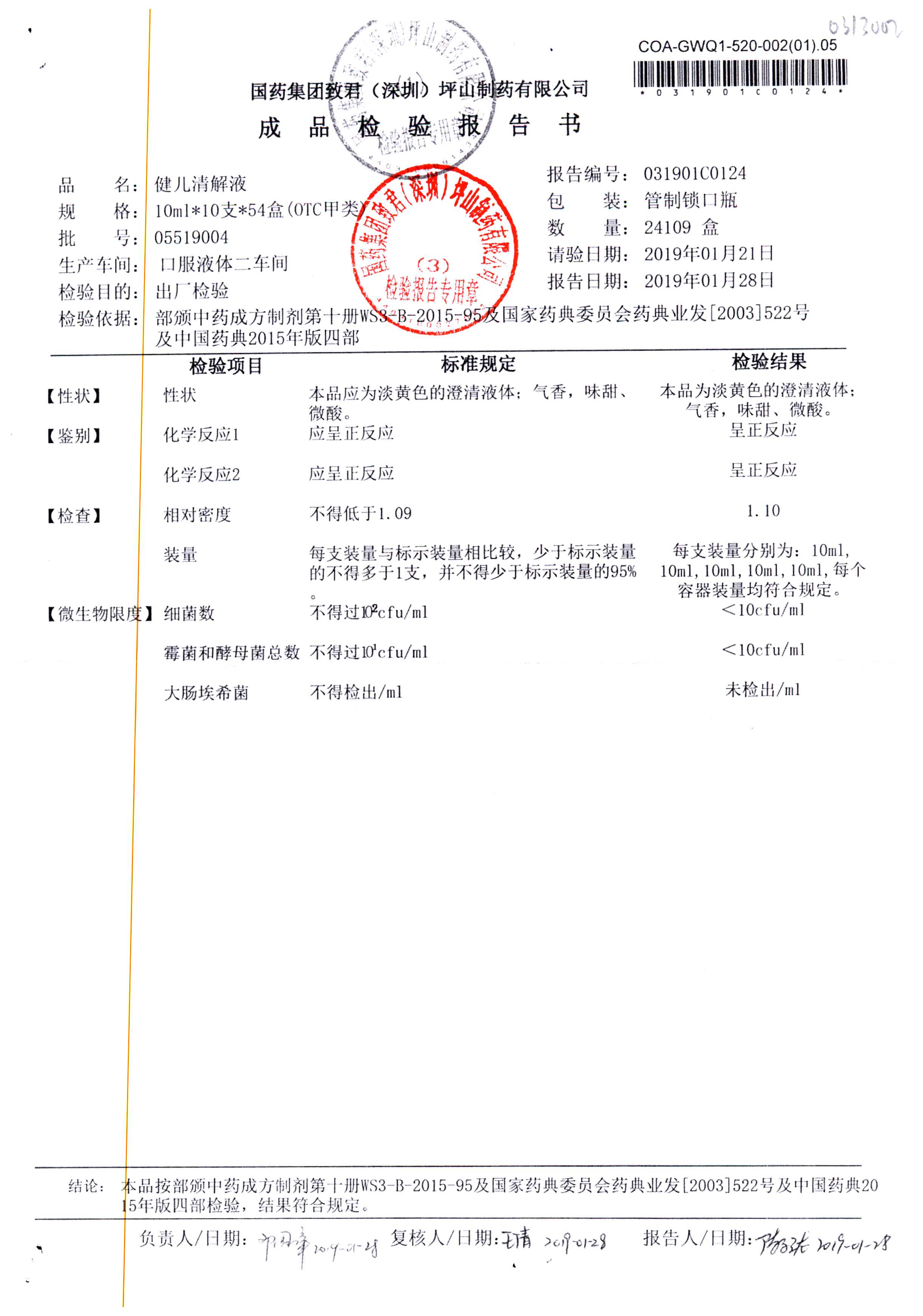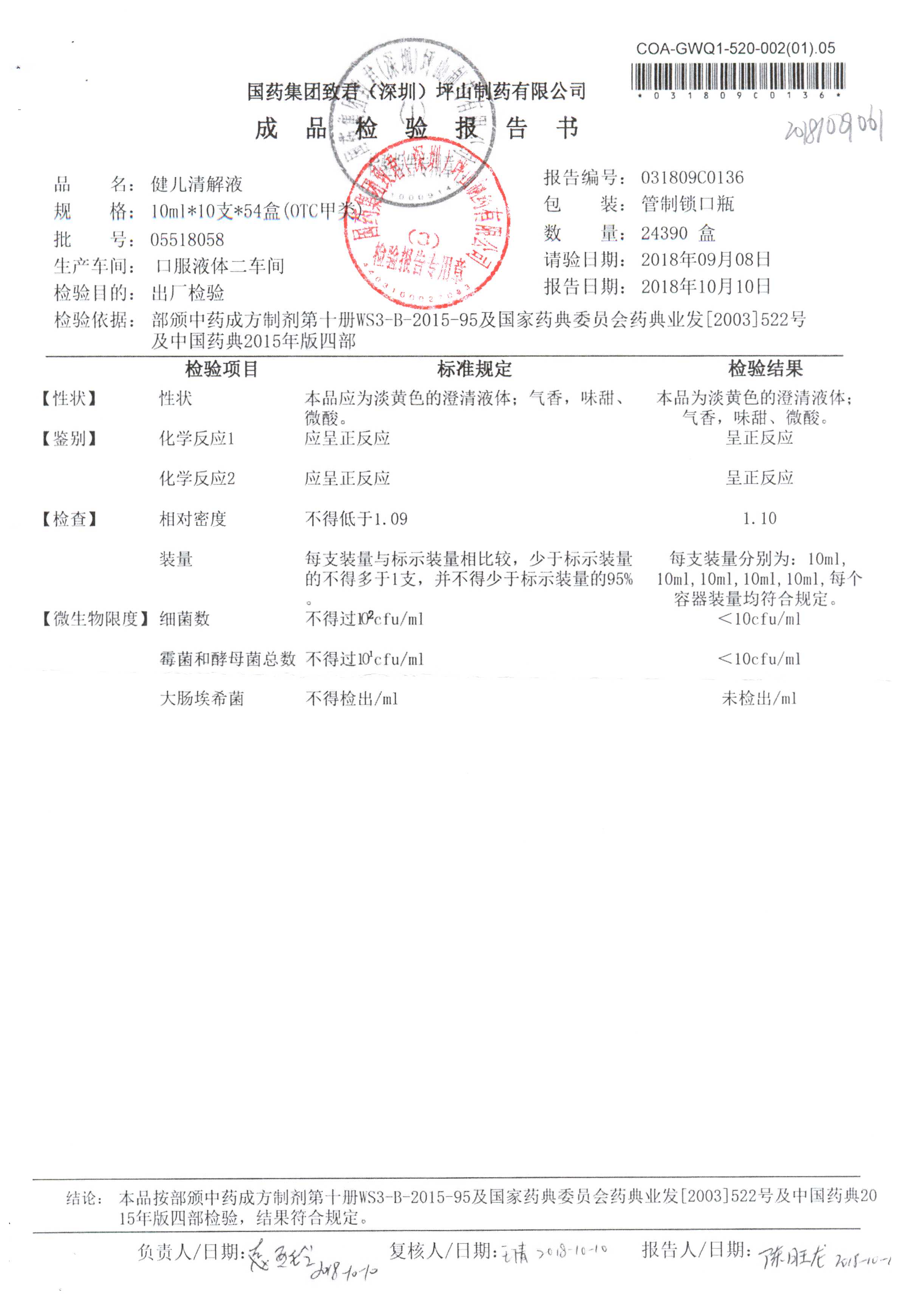 名稱 規(guī)格 批號 藥檢報告